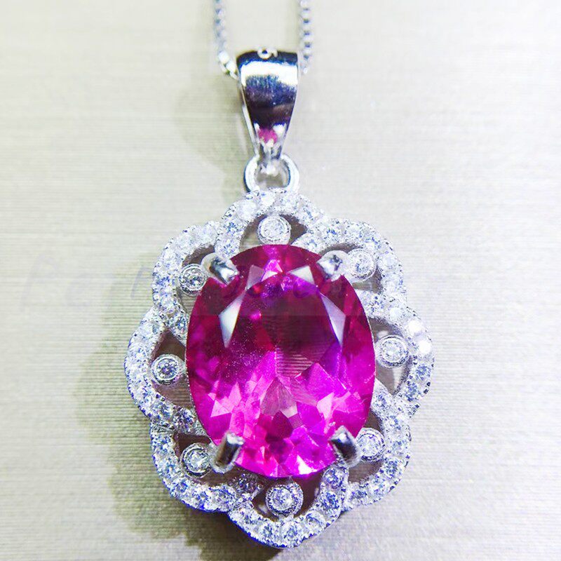 Натуральное розовое ожерелье, платиновая подвеска, серебро 925 пробы