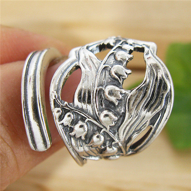 【Американские цветочные украшения】 925 Pure Lily of the Valley Flower Flower of Happiness Серебряная ложка живое кольцо