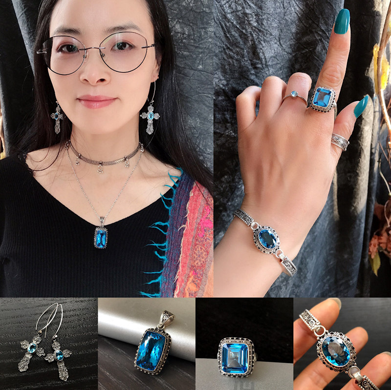 Ретро этническая подвеска ручной работы, натуральные серьги, Индия, серебро 925 пробы