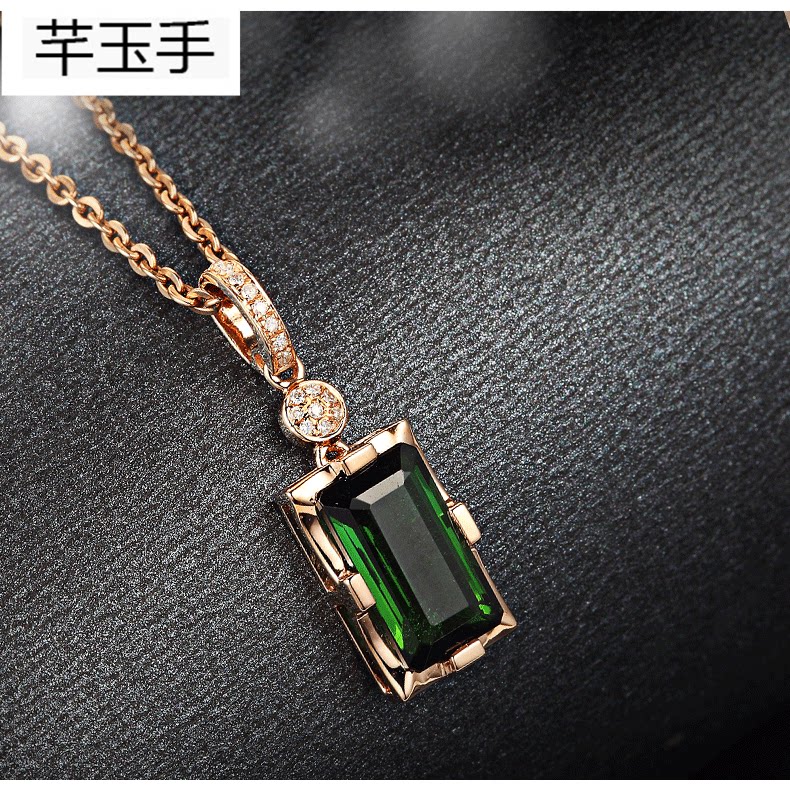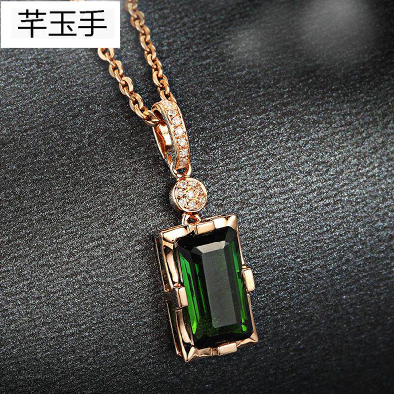 Аксессуар из нефрита, золотая натуральная инкрустация камня, турмалиновая подвеска, ожерелье, европейский стиль, 18 карат, розовое золото