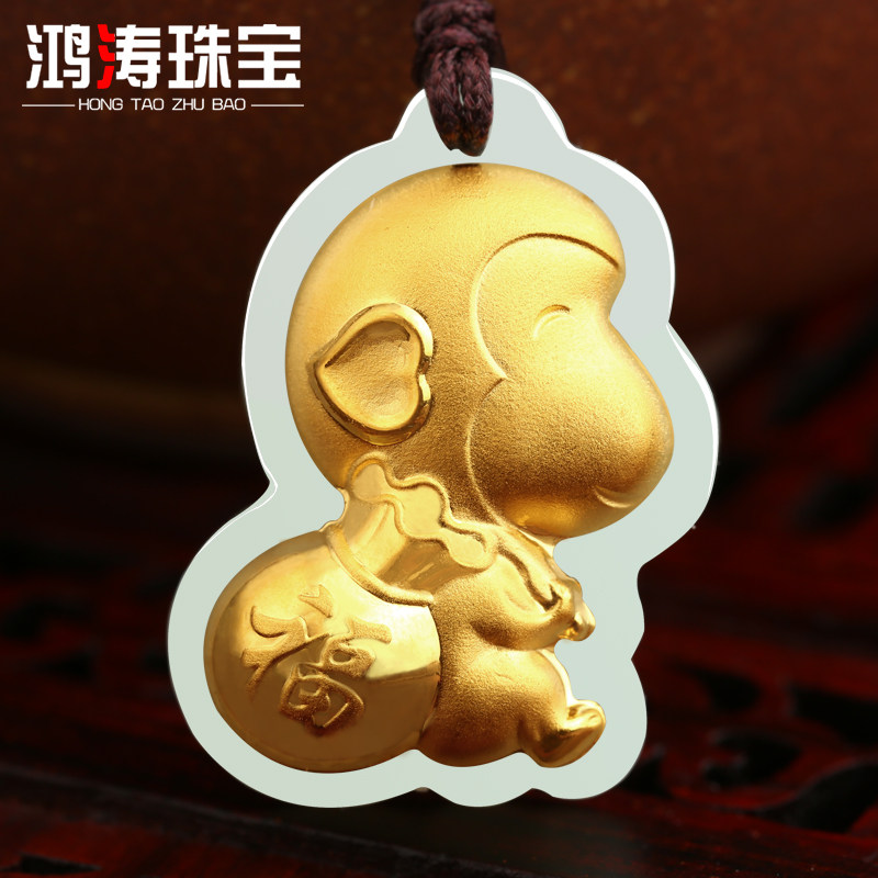 鸿涛 Золотая натуральная подвеска из нефрита, цепочка подходит для мужчин и женщин, ремешок, женский стиль