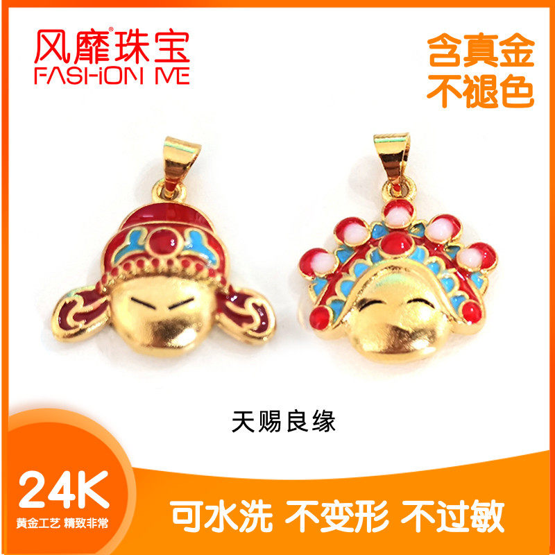 Последовательный национальный стиль прилива Золотой жаркий синий подвеска, Tianci Liangyuan Emamel Color Jingtai Blue 3D Hard Gold 24k Real Gold