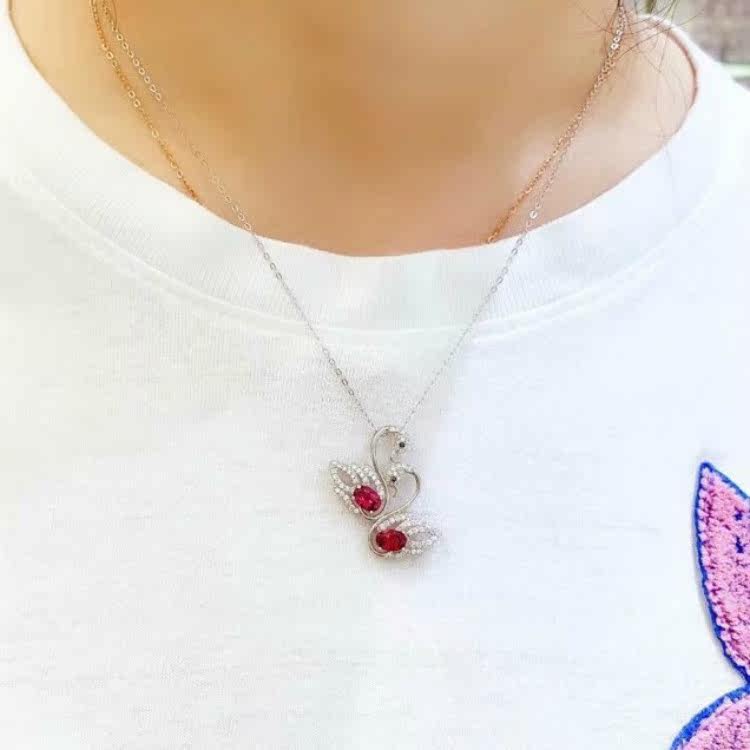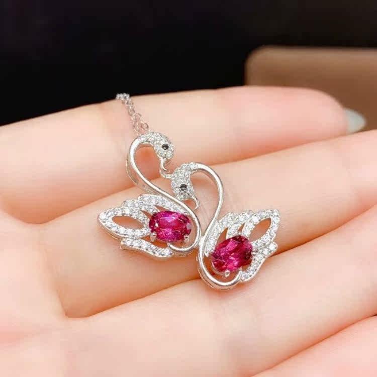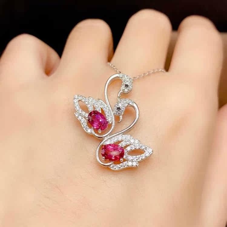 Розовая натуральная турмалиновая подвеска, инкрустация камня, ожерелье из кварца, милый лебедь, серебро 925 пробы, с драгоценным камнем