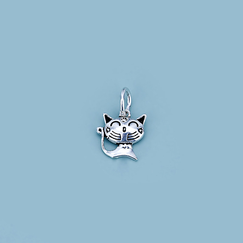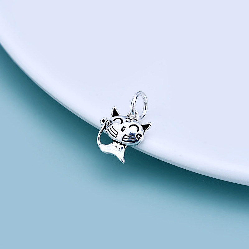 S925, ретро плетеная подвеска ручной работы, набор материалов, серебро 925 пробы, кот, DIY