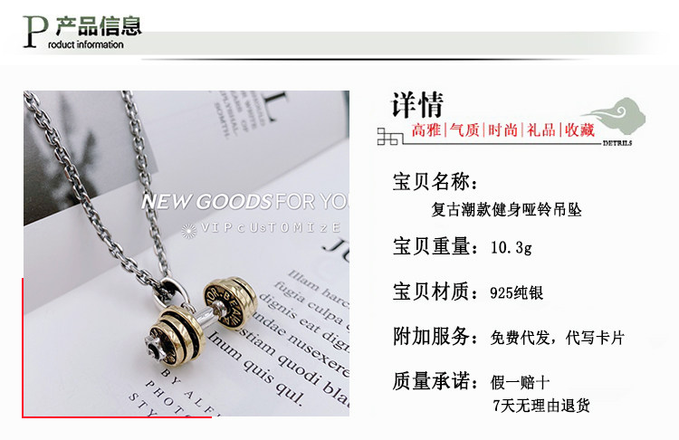 Ретро аксессуар, гантели для спортзала, креативная подвеска, серебро 925 пробы, для влюбленных, креативный подарок