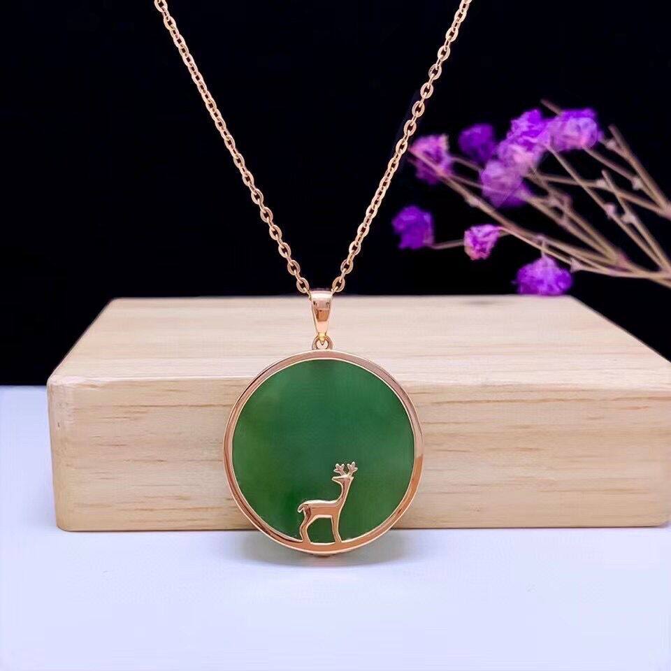 Натуральная яшма из округа Хотан, подвеска, изумрудный защитный амулет, золото 750 пробы, простой и элегантный дизайн