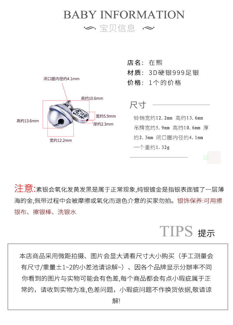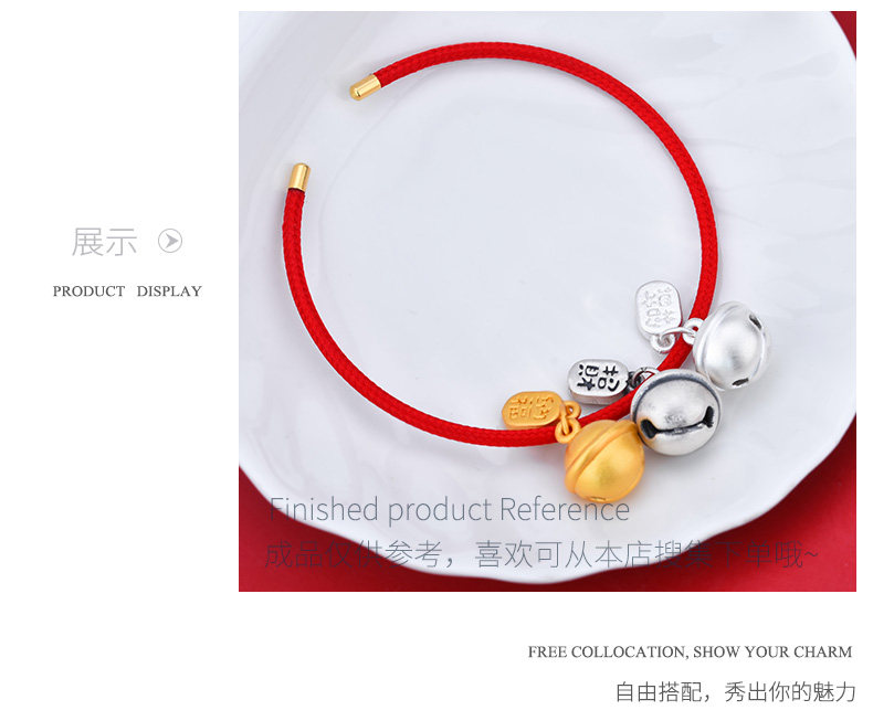 Серебряный браслет, колокольчик, подвеска ручной работы, ручка с аксессуарами, 3D, на удачу, DIY
