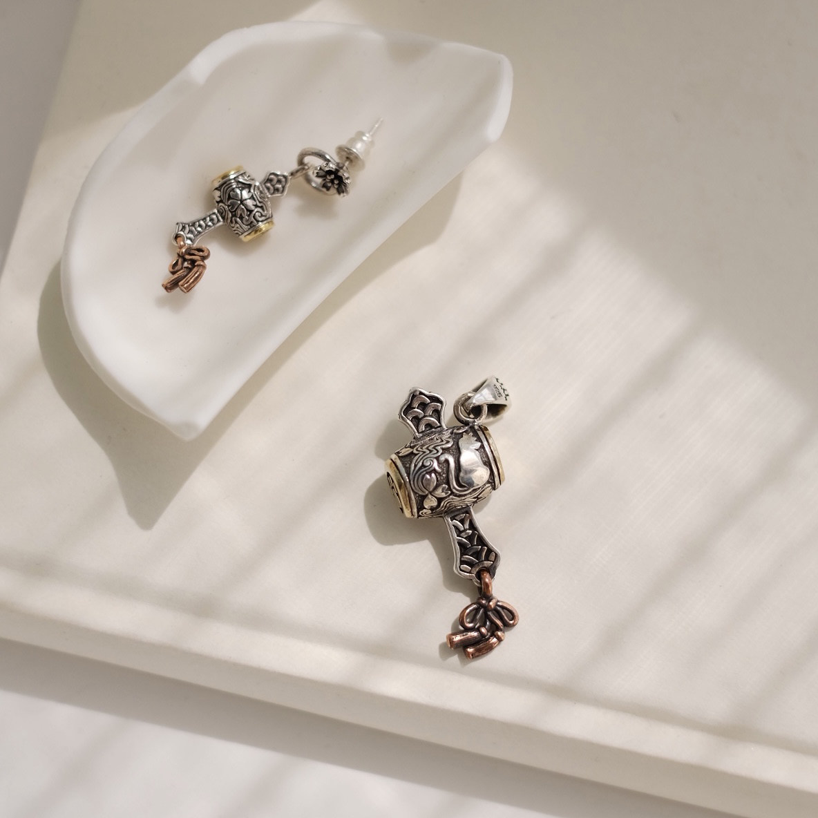 Молоток, небольшая дизайнерская подвеска, серьги, серебро 925 пробы