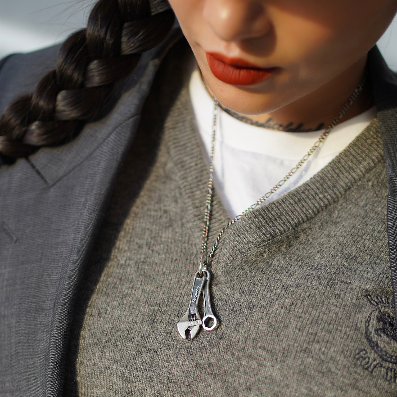Подвеска, плоскогубцы, гаечный ключ ручной работы, небольшое дизайнерское ретро ожерелье, серебро 925 пробы
