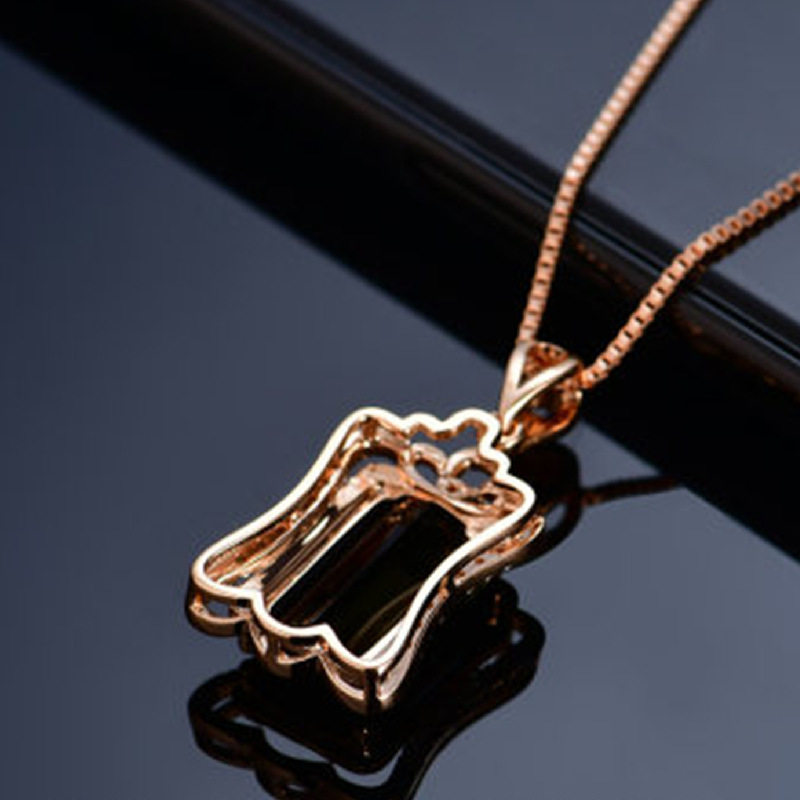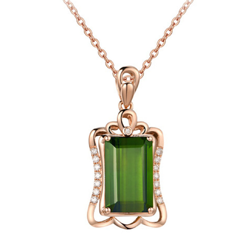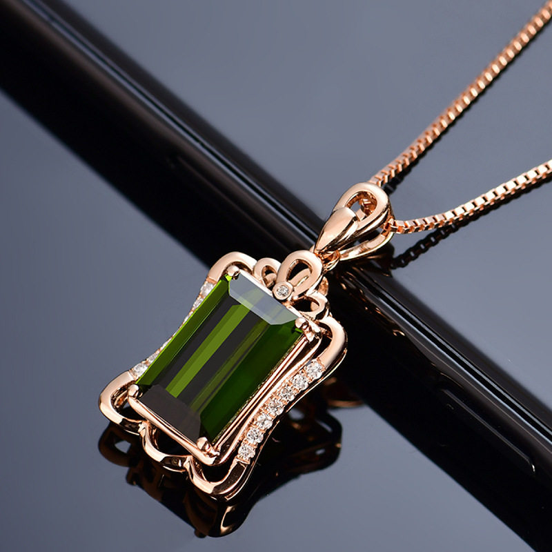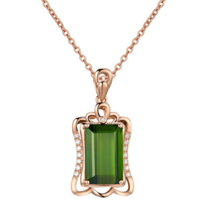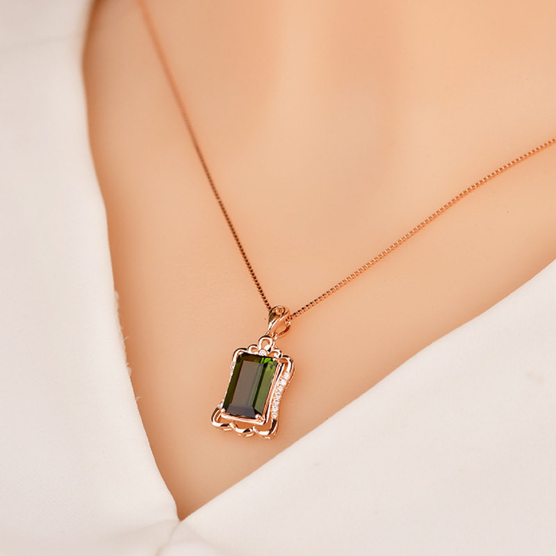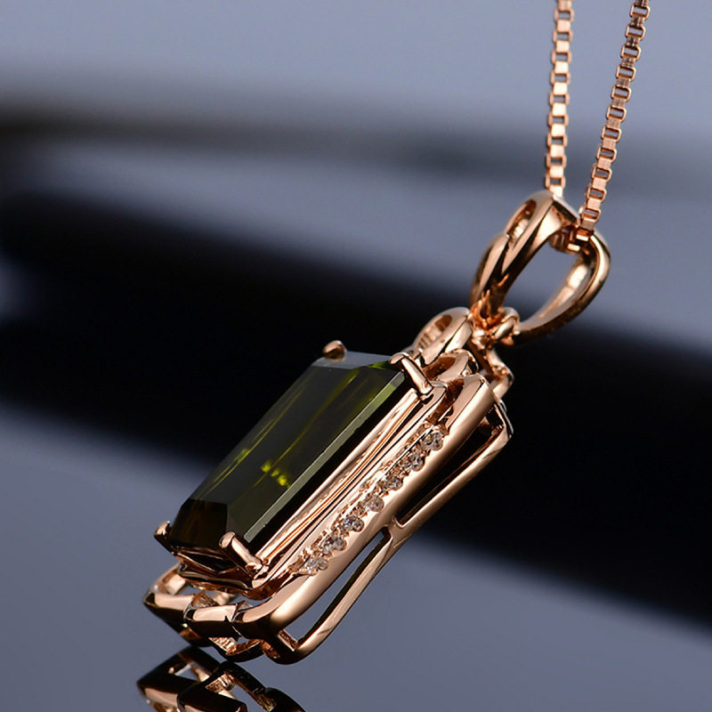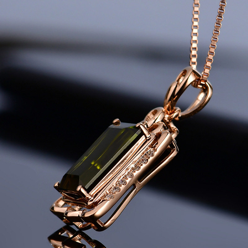 Золотая прямоугольная подвеска изумруд с цирконом, розовое золото, с драгоценным камнем, европейский стиль