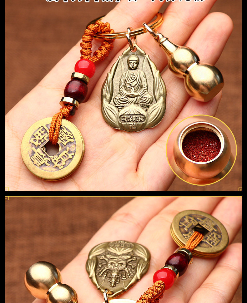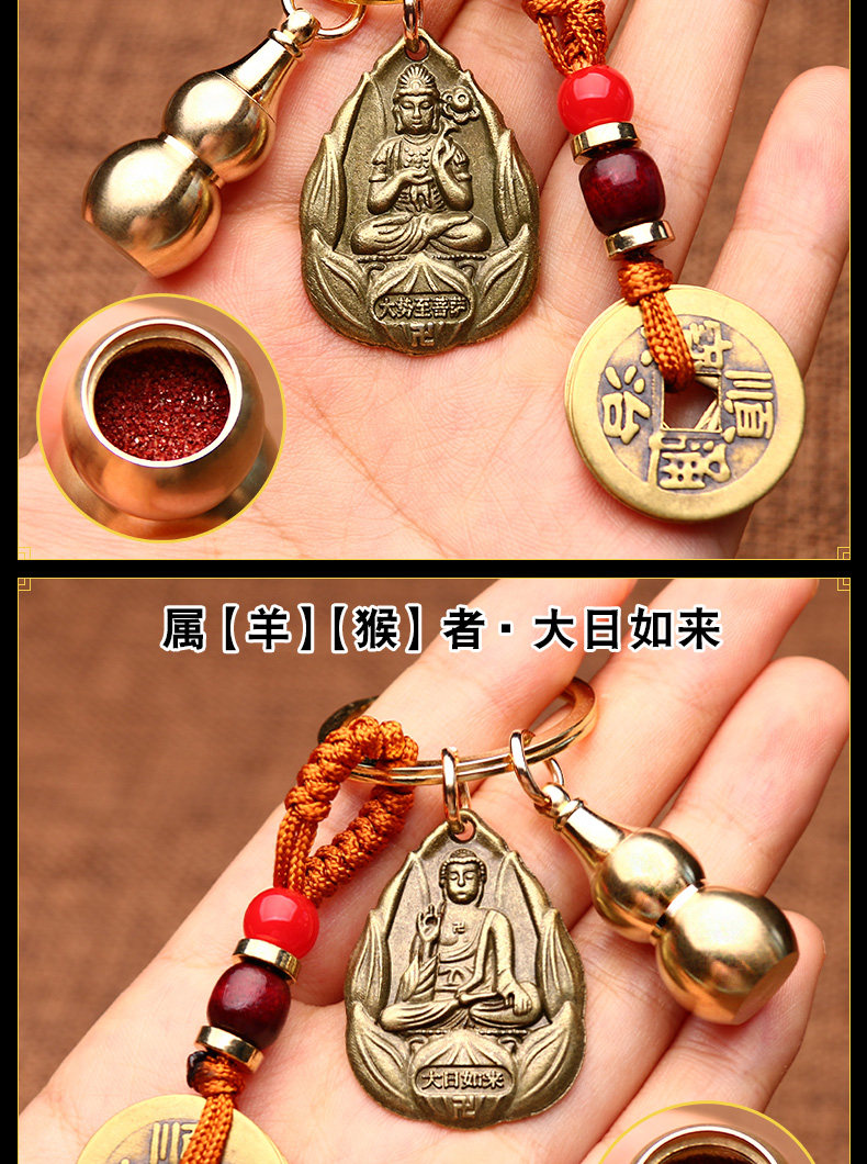 - Fangpai Zodiac Sheep [Da Sun Rulai Buddha] Медная пять императорских денег+тыква нажимает полные+Zodiac Guardian God