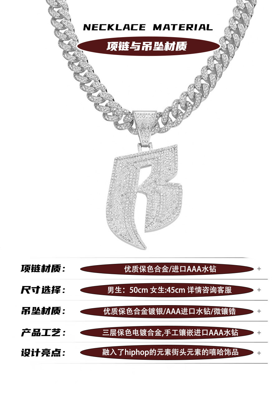 Ожерелье для мальчиков в стиле хип-хоп с буквами, в американском стиле, мужской стиль, инкрустировано бриллиантами