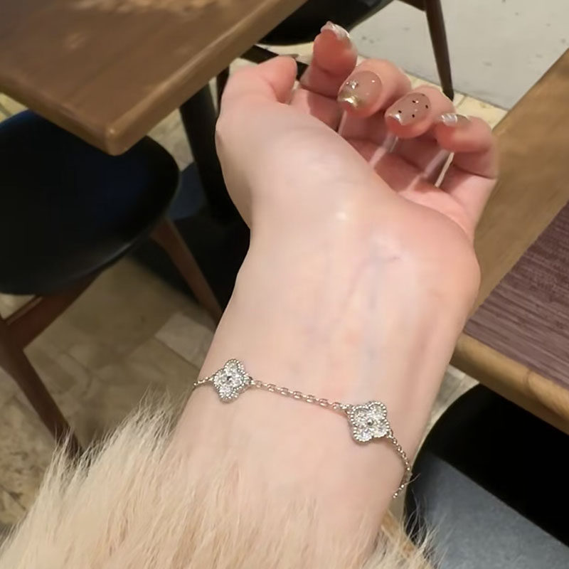 Агатовый золотой платиновый браслет, четырехлистный клевер, легкий роскошный стиль, изысканный стиль, 18 карат, розовое золото