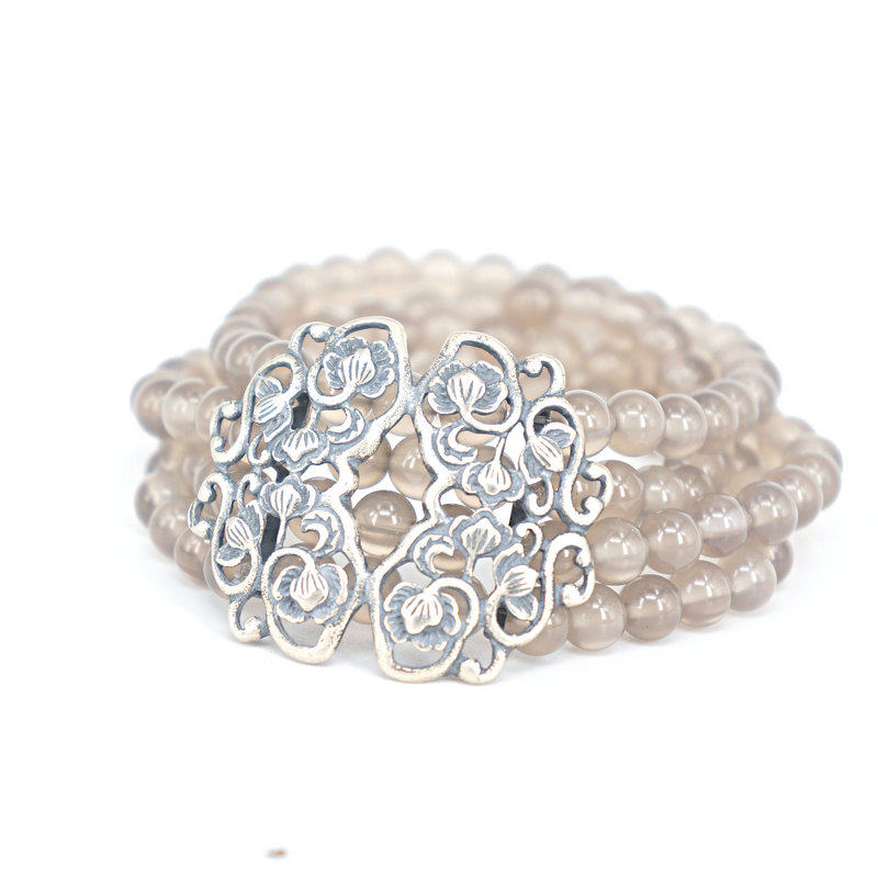 Ph7925su стерлингового серебра старая косметичка сокровище двойной промежности 4 круга браслет из серого агата и халцедона для женщин подарок на день рождения