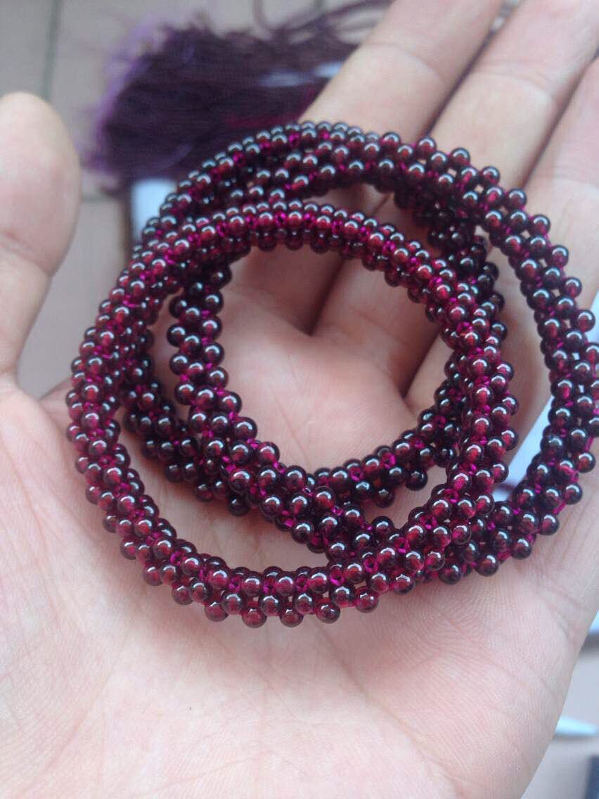 Натуральный плетеный браслет из граната ручной работы