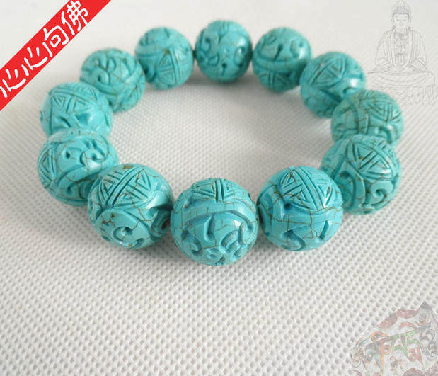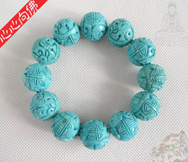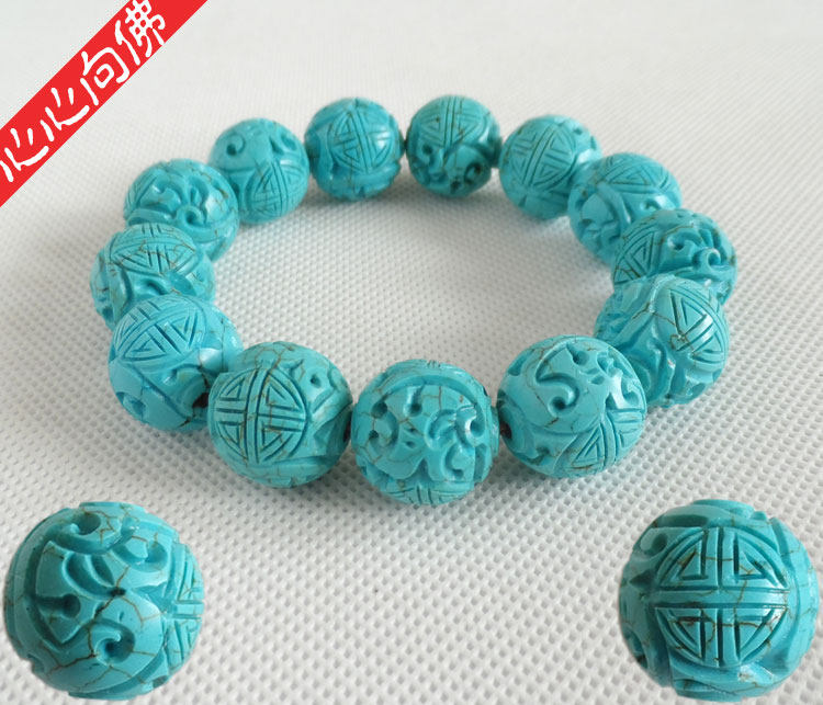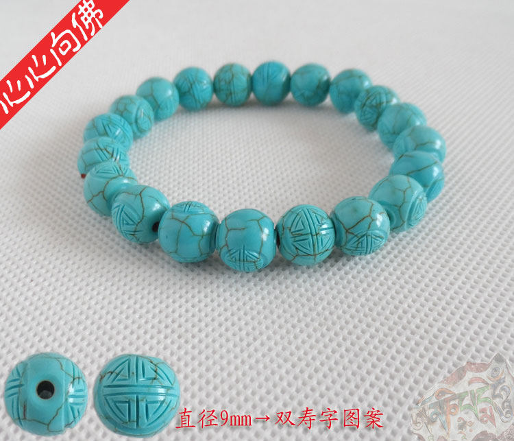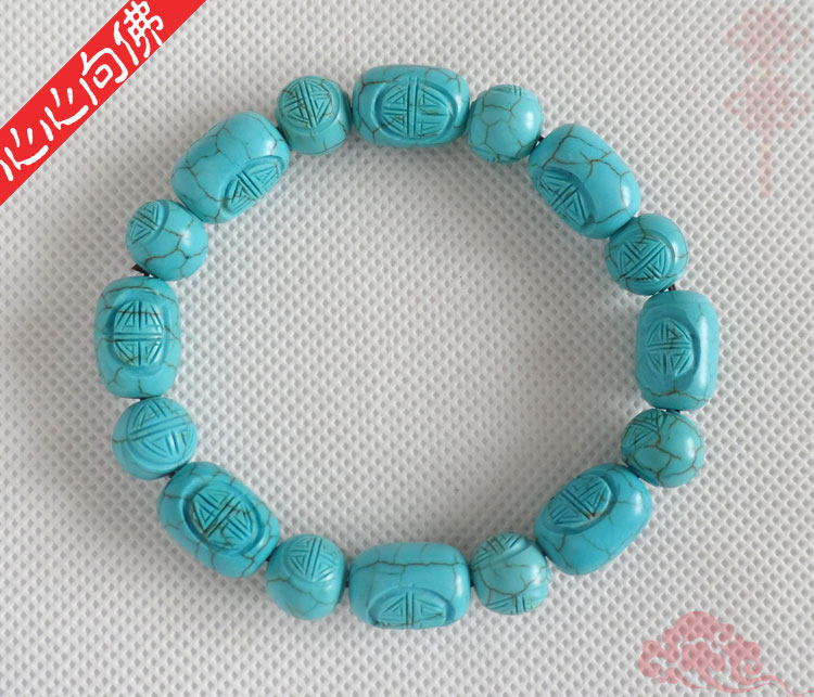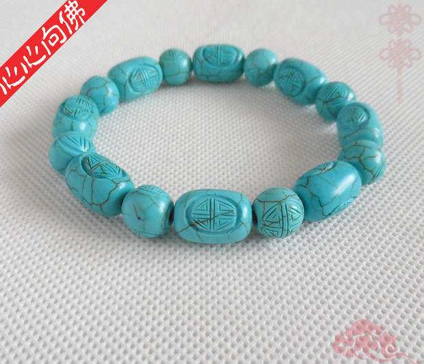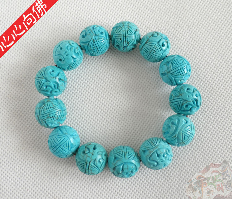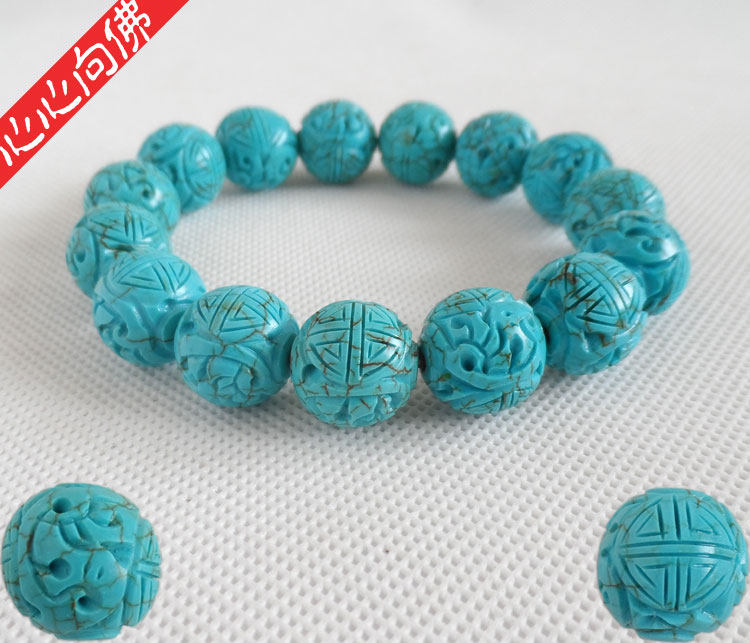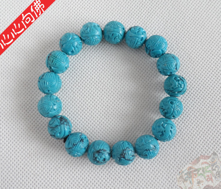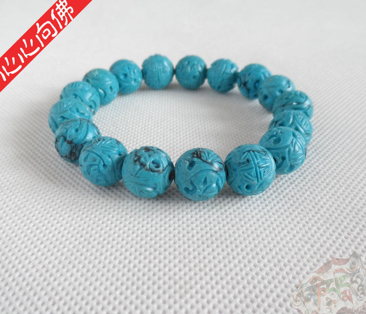 Бирюзовый резной классический браслет из бусин из натурального камня ручной работы, принт