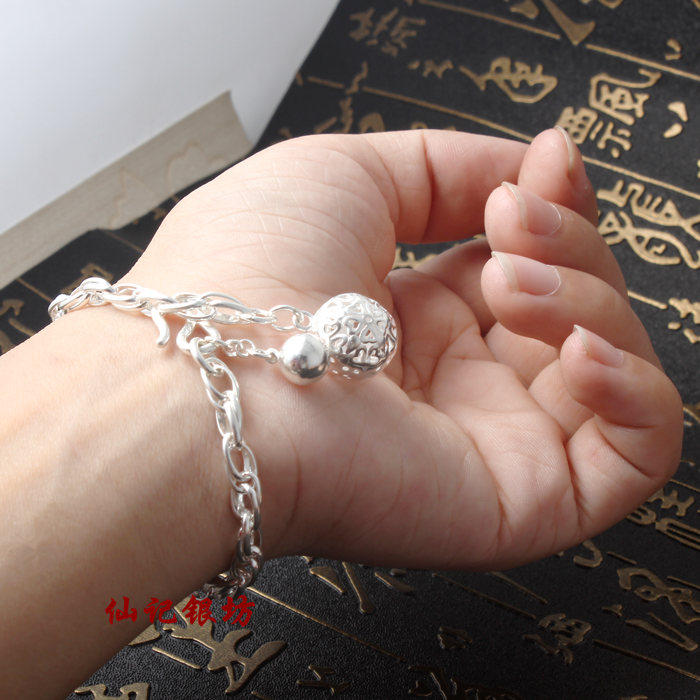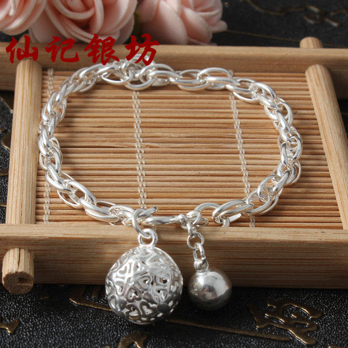 仙记银坊 990 Сериал 990 Серебряный серебряный браслет Bell Belle Bell Bell, то же самое висящее цепное цветочное колокол тысячи костей