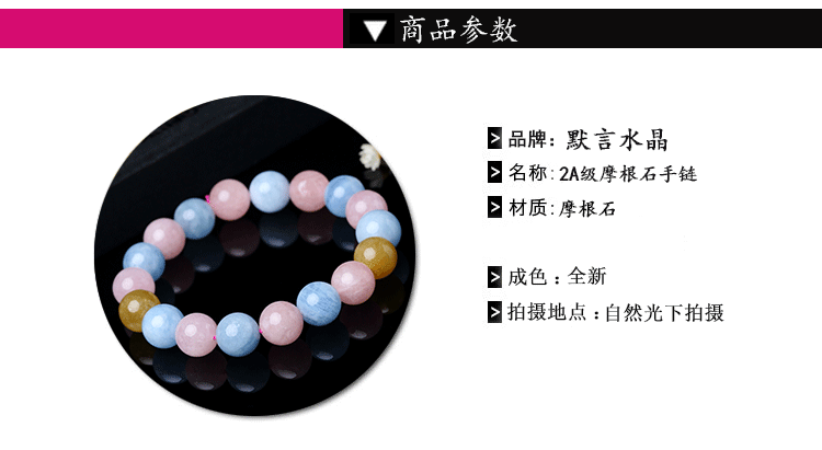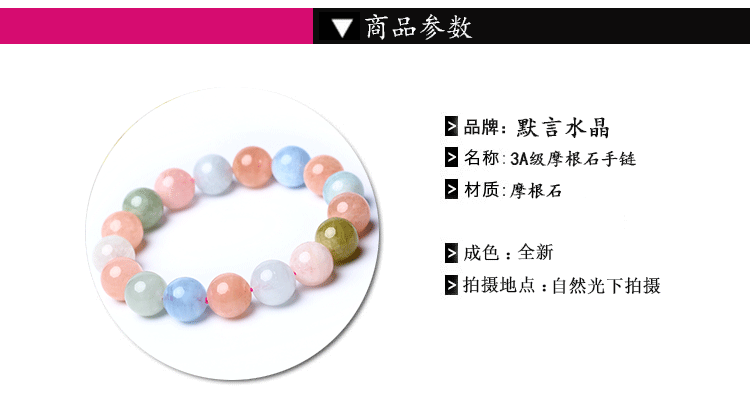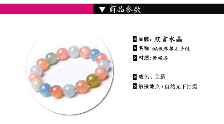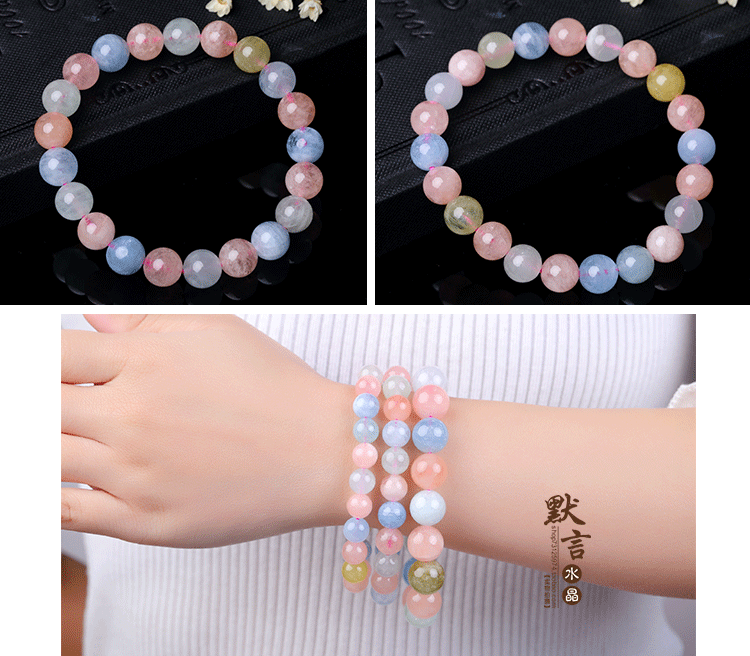 3A-браслет Morganite Morganite: круглые кристаллы, с небольшими примесями, но не влияют на общий эффект.