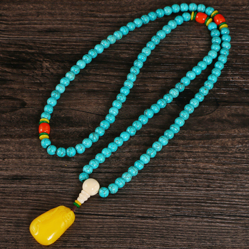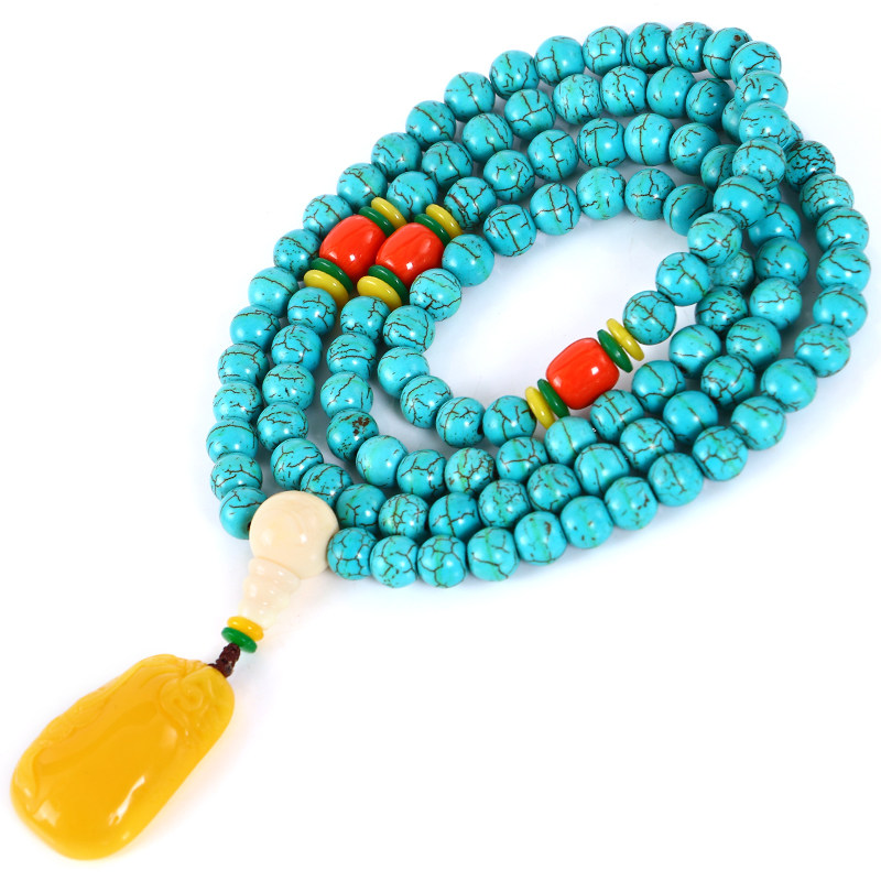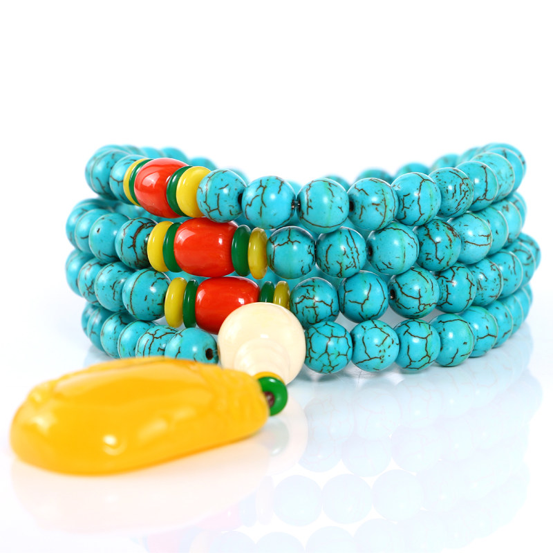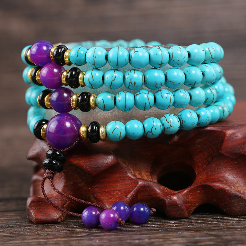 Этнический бирюзовый браслет из натурального камня, четки из круглых бусин, свитер, ожерелье, аксессуар подходит для мужчин и женщин, этнический стиль, 108 бусин, подарок на день рождения