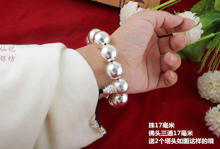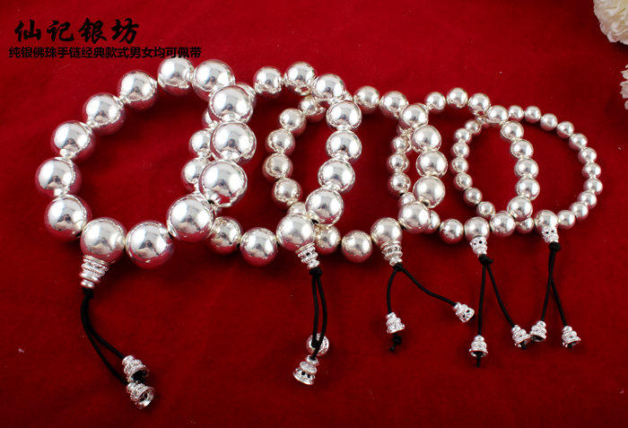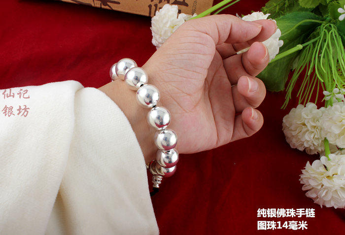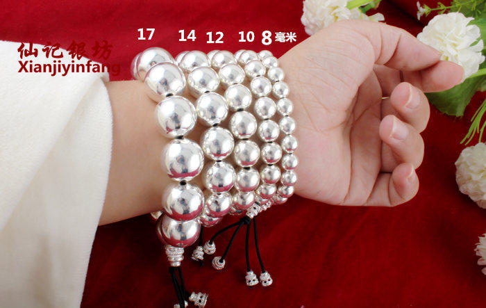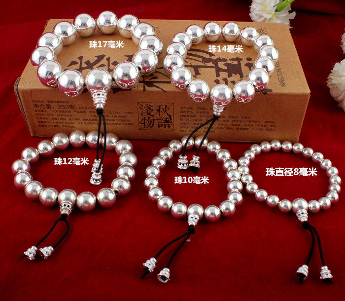 Украшение-шарик подходит для мужчин и женщин, серебряный браслет, четки из круглых бусин, браслет с одной бусиной, детский браслет из бисера, серебро 999 пробы, женский стиль, подарок на день рождения