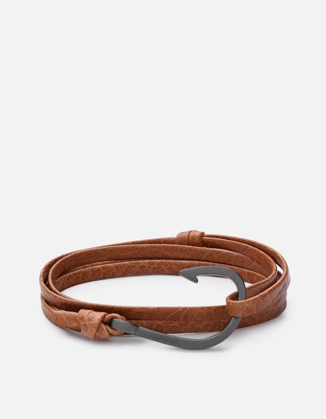 Фирменные миансай якоря, чтобы завершить итальянский кожаный браслет на заводе загоремого в матовом черном и слое для покрытия.