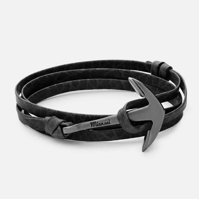 MIANSAI Якорный крючок на кожаном браслете, браслет из матового черного кожи