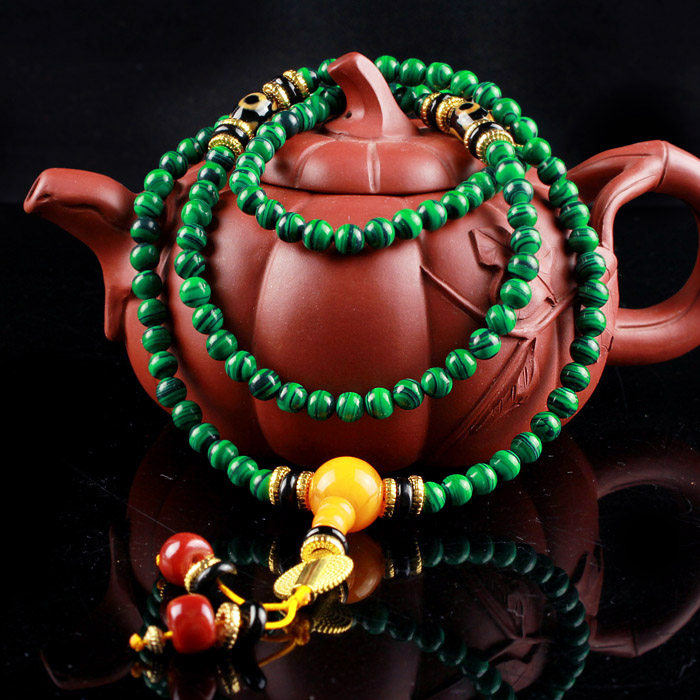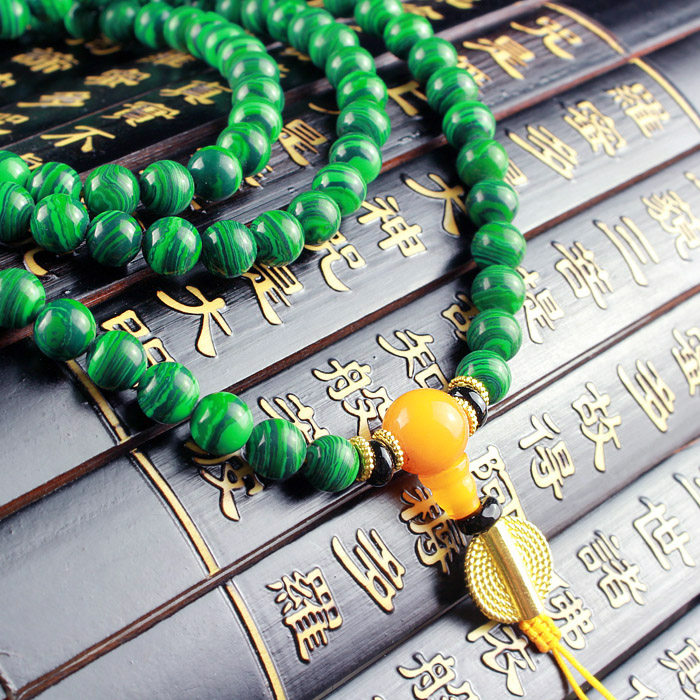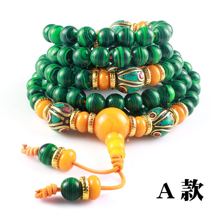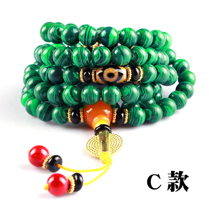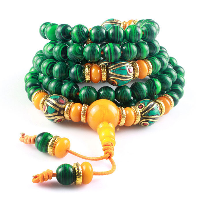 Синтезированные четки из круглых бусин малахит, браслет из воскового агата подходит для мужчин и женщин, 108 бусин