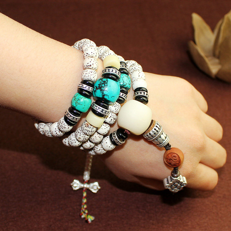 Четки бодхи, четки из круглых бусин, синтезированный бирюзовый браслет