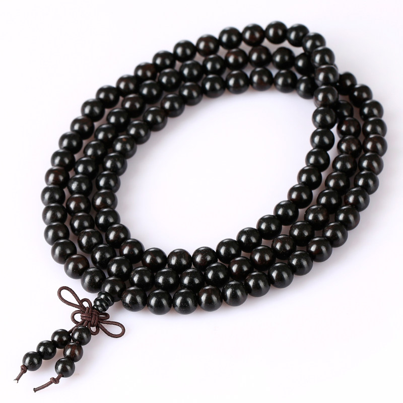 Четки из круглых бусин из черного дерева Эбен из сандалового дерева, ожерелье, цепочка, браслет, ювелирный шарм, аксессуар, ручка подходит для мужчин и женщин из грецкого ореха, 108 бусин