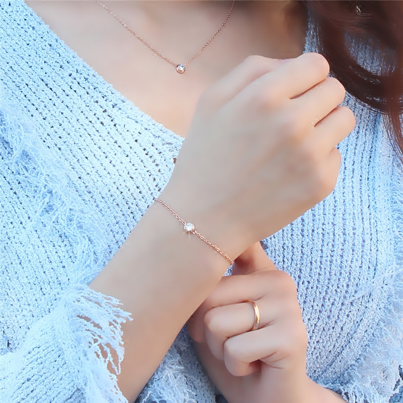 Браслет, золотая цепочка из нержавеющей стали, ювелирное украшение, в корейском стиле, простой и элегантный дизайн, розовое золото