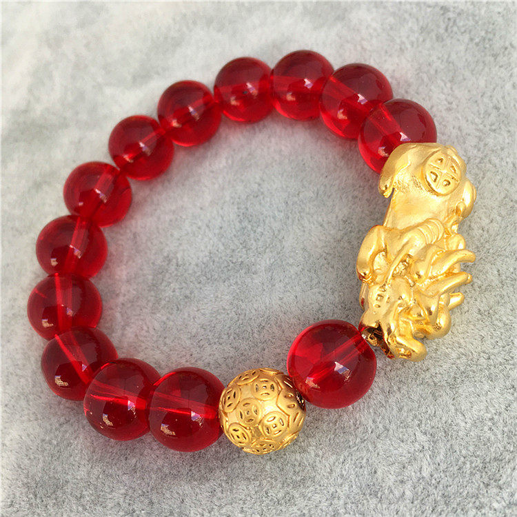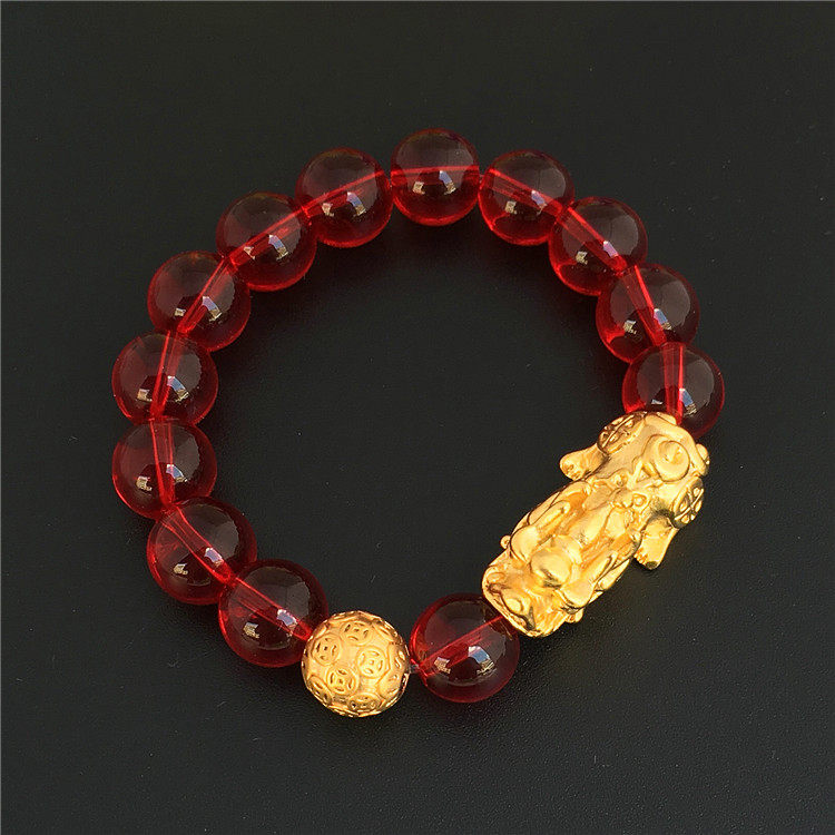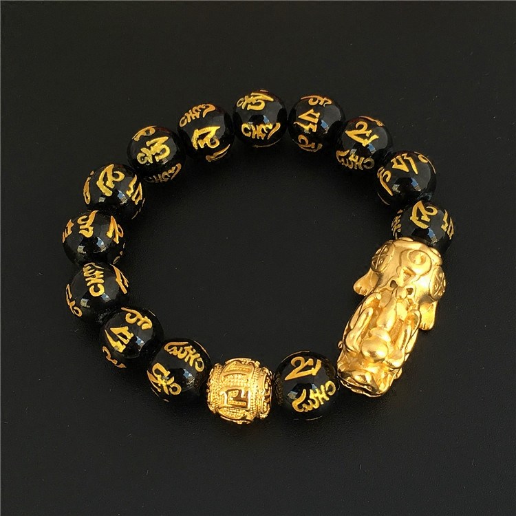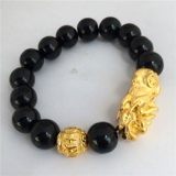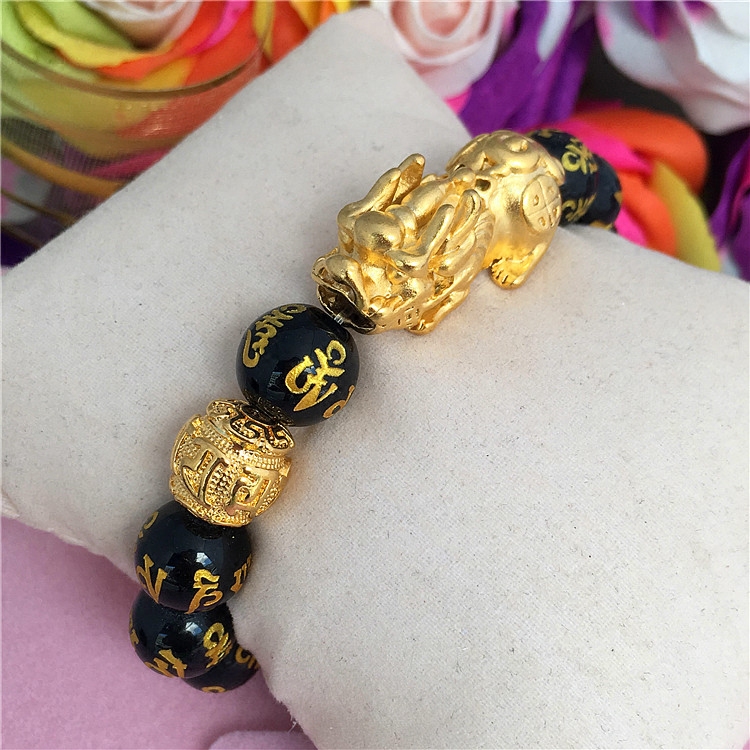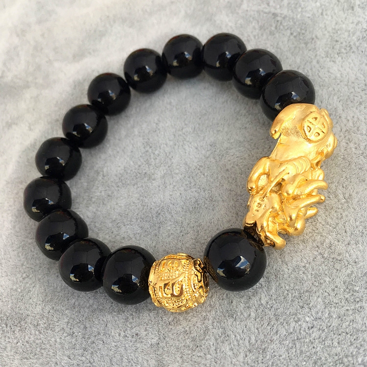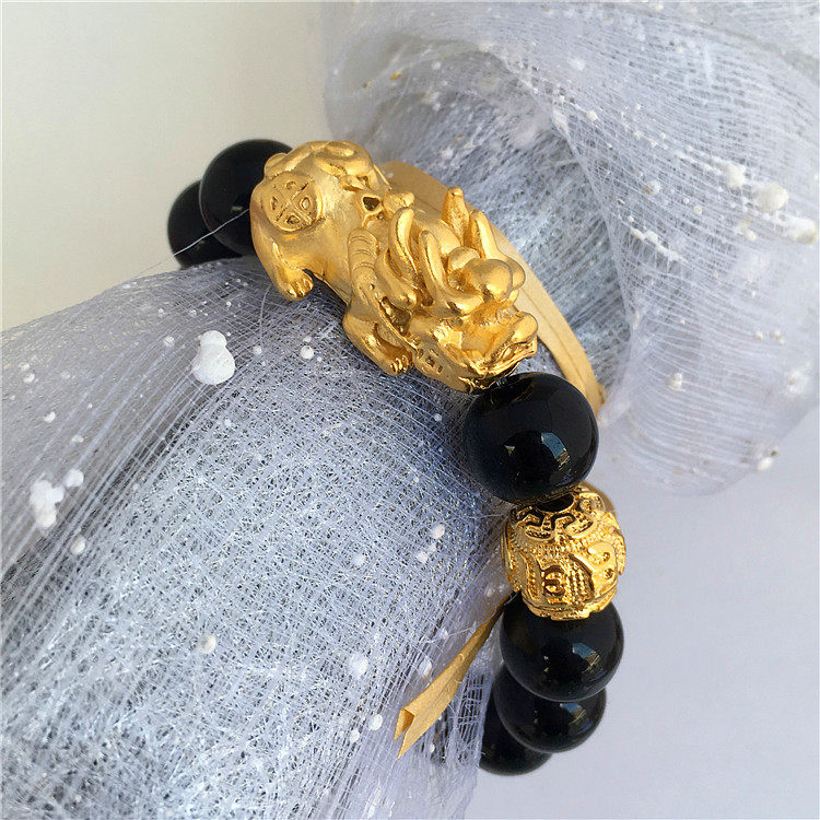 Классический обсидиановый вьетнамский песочно-золотой браслет Pixiu, мужской браслет на удачу, мужской браслет, медный позолоченный натуральный обсидиан