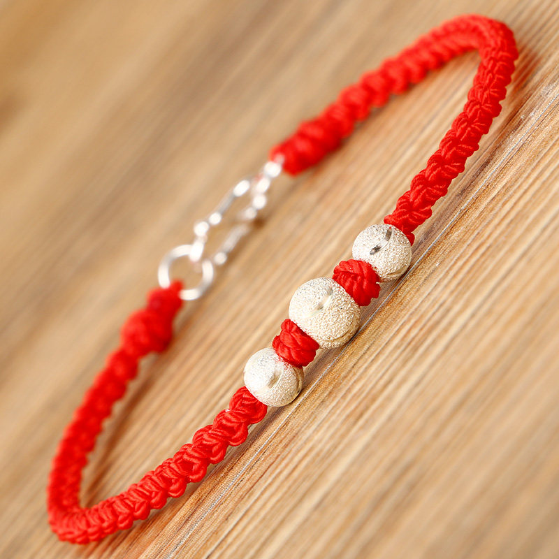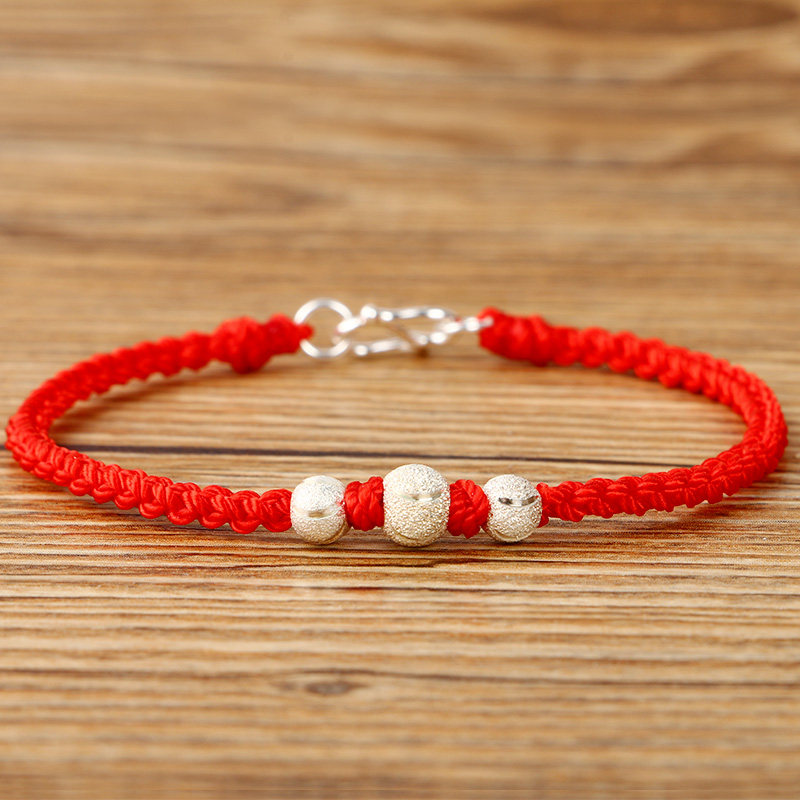 Оберег на день рождения ручной работы, плетеный браслет из красной нити подходит для мужчин и женщин, браслет с одной бусиной для влюбленных, браслет на ногу, серебро 925 пробы, подарок на день рождения