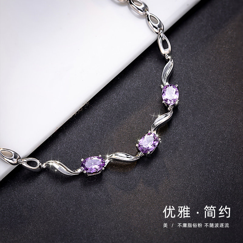 Сиреневый памятный серебряный браслет для влюбленных, серебро 925 пробы, простой и элегантный дизайн, подарок на день рождения