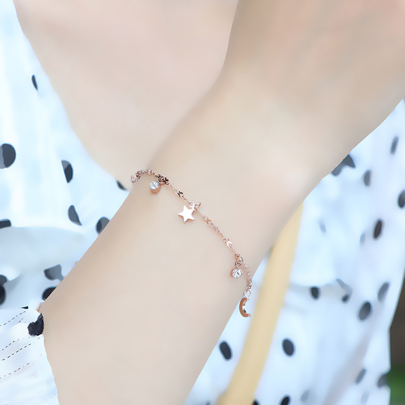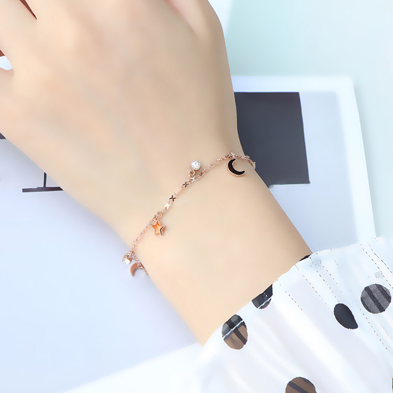 Золотой универсальный свежий браслет из нержавеющей стали, японские и корейские, 18 карат, розовое золото