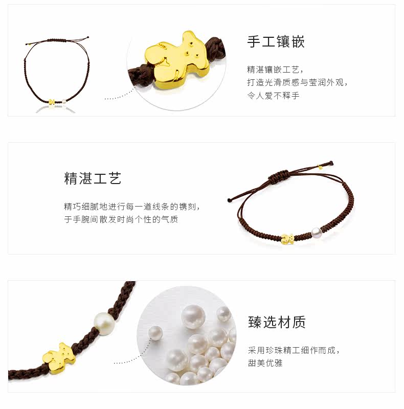TOUS/桃丝熊 Плетеный браслет ручной работы из жемчуга, золото 750 пробы
