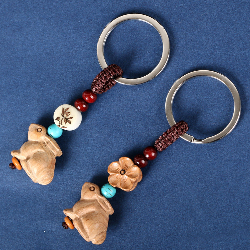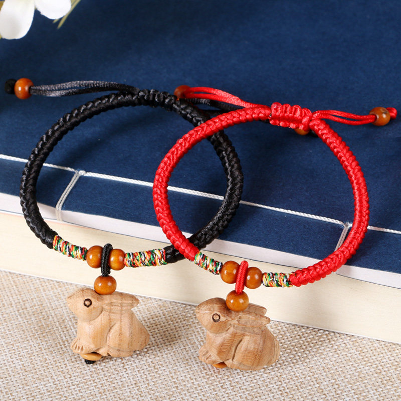 Трехмерный кролик, подвеска, брелок, резной браслет из красной нити из натурального дерева, китайский гороскоп