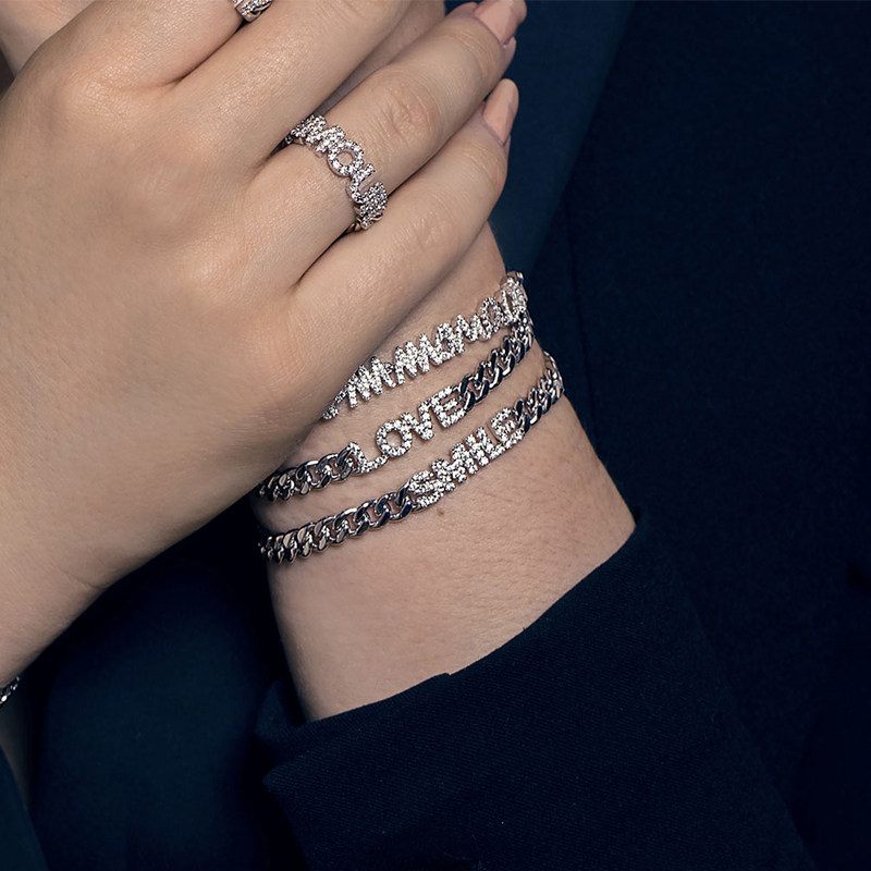 APM Monaco Smile Smile Wide Bracelet Женские серебряные отделки рука рука -Сделанные подруги и письма, подруги, браслеты, подарки Qixi Festival, чтобы дать подругам