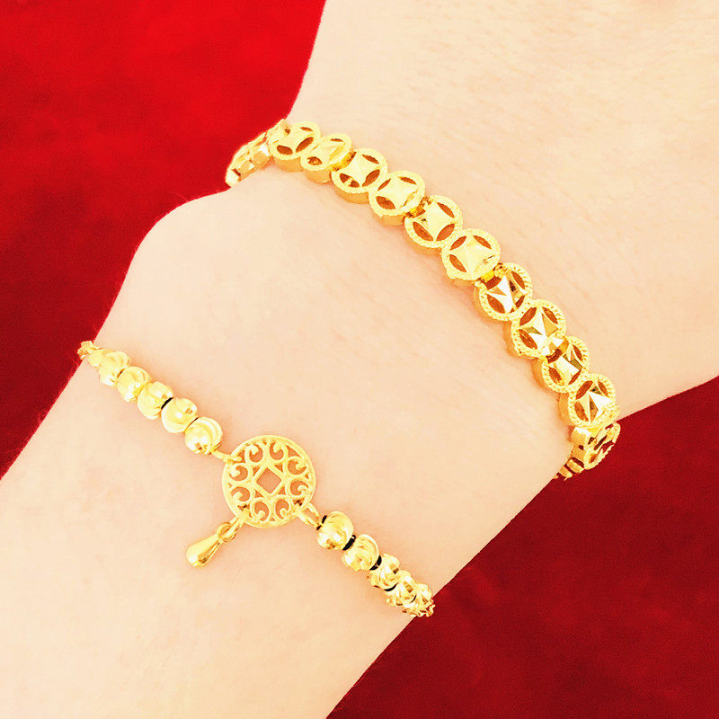 Золотой медный браслет с одной бусиной, монеты, ювелирное украшение, не выцветает