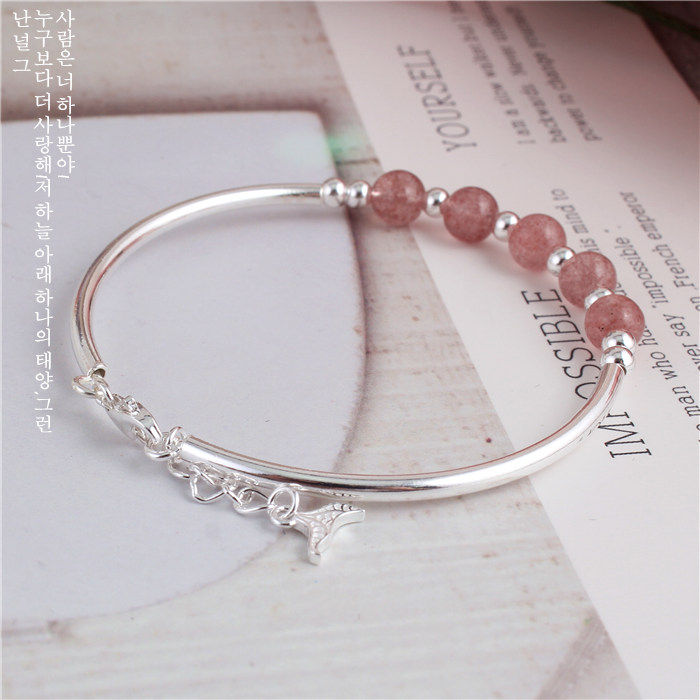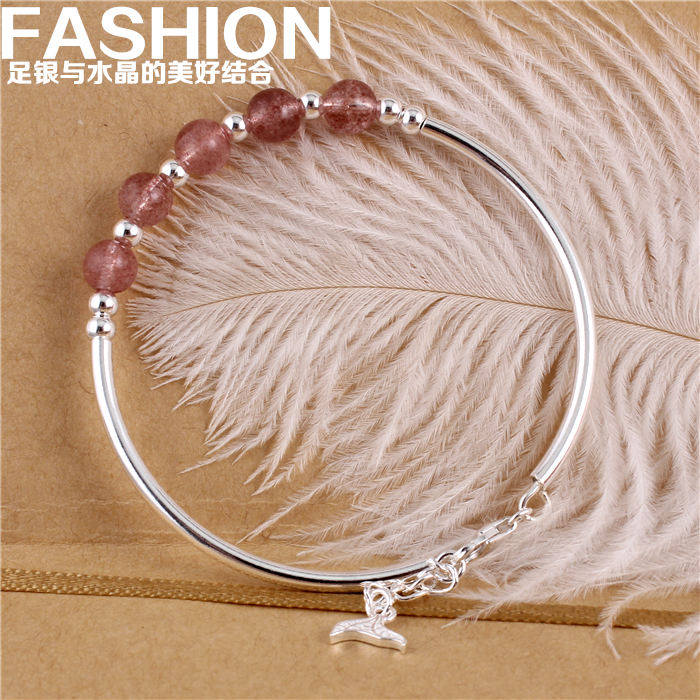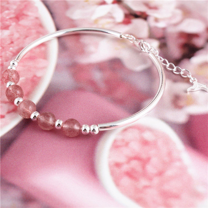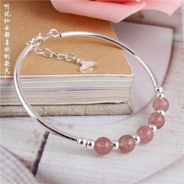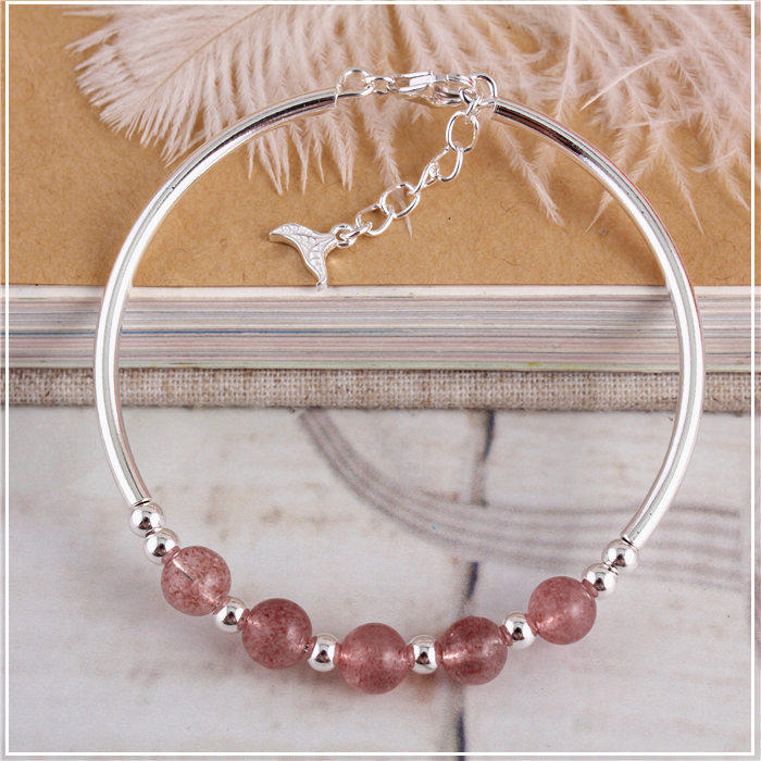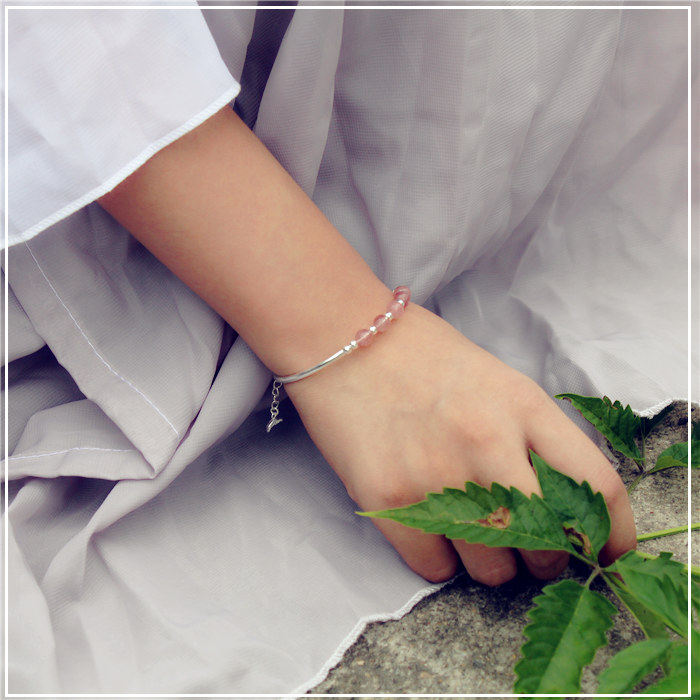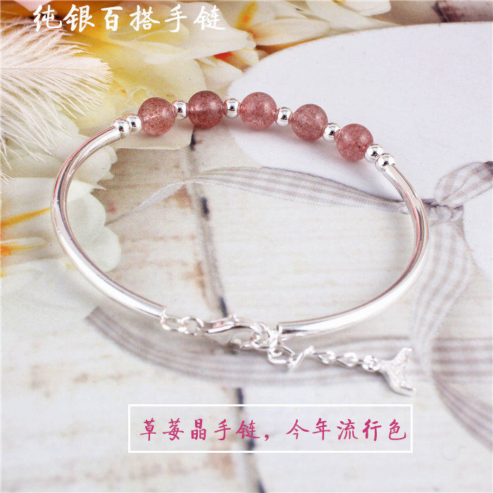 Натуральный кварц, серебряный браслет, браслет с одной бусиной, серебро 925 пробы, серебро 990 пробы
