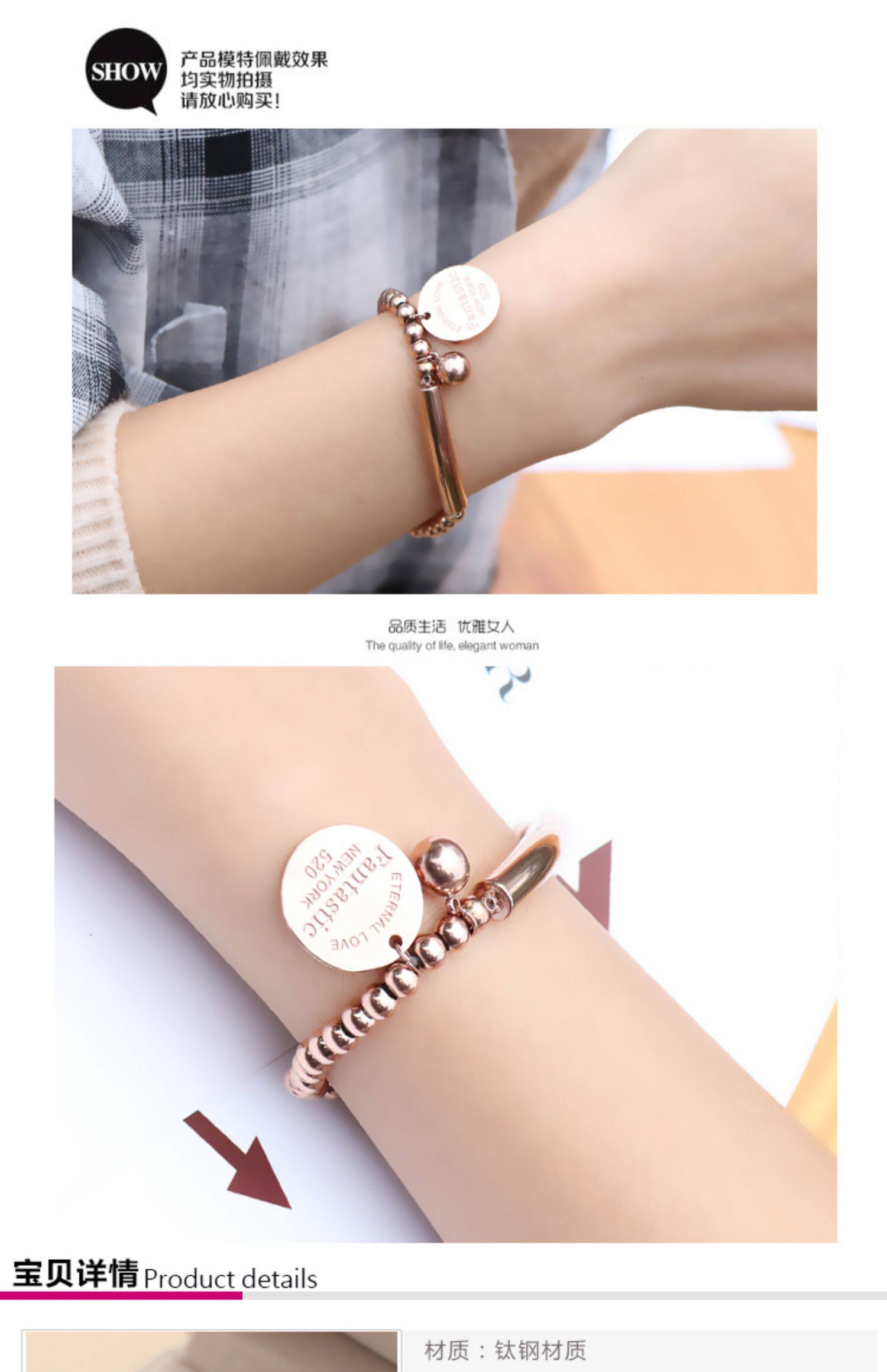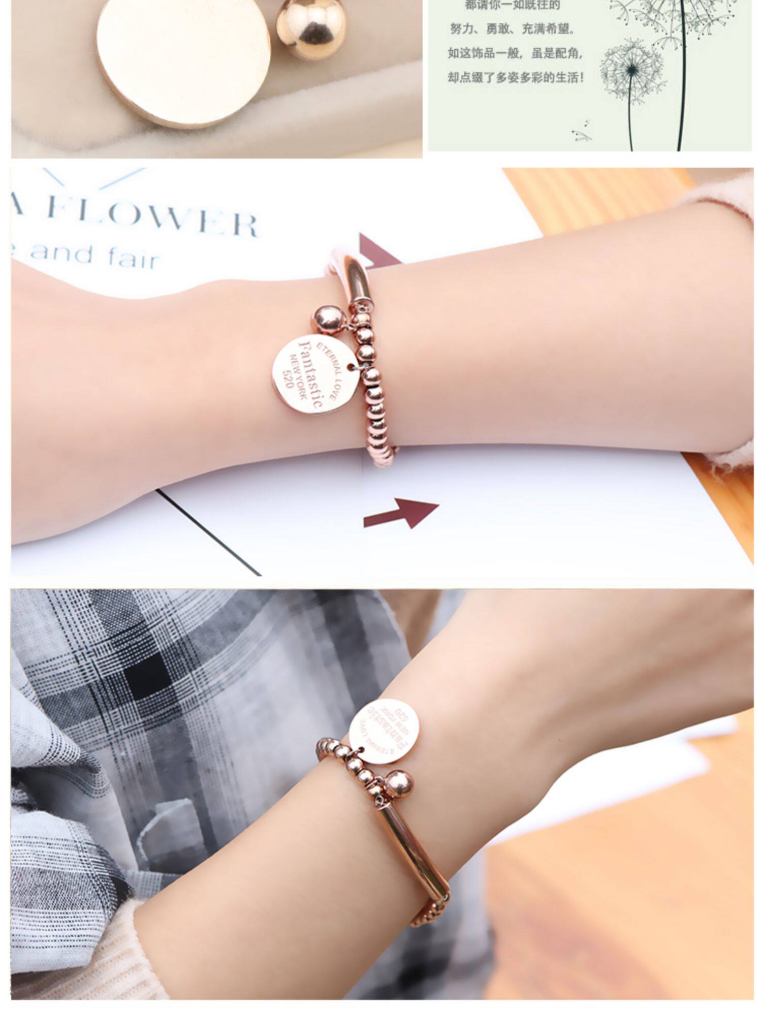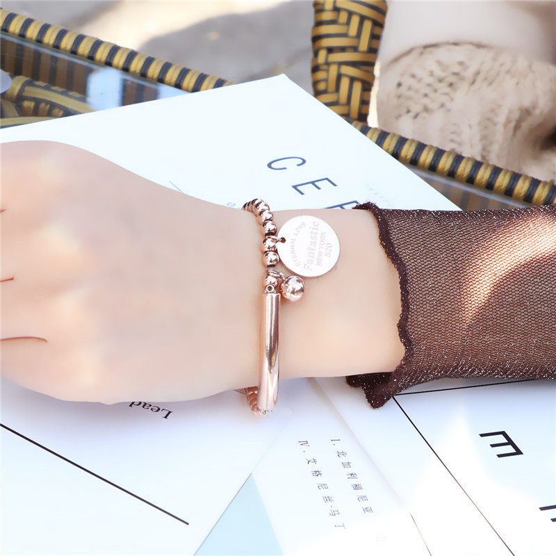 Золотой брендовый браслет из нержавеющей стали, розовое золото, простой и элегантный дизайн, популярно в интернете