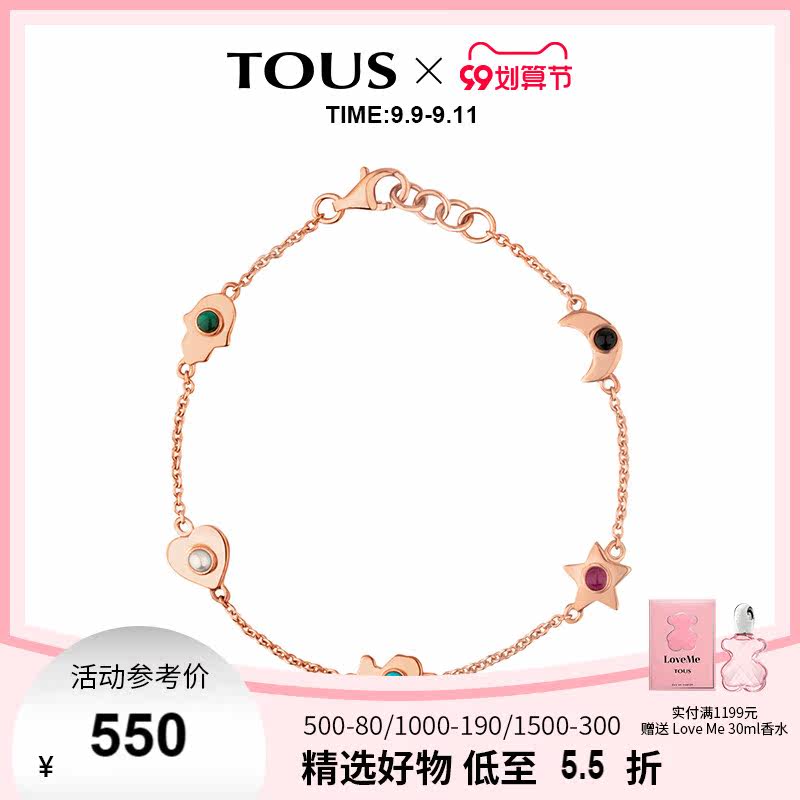 TOUS/桃丝熊 Золотой рубиновый агатовый браслет из жемчуга, 18 карат, розовое золото
