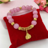 Долговечный браслет, розовая подвеска, золотой аксессуар, кошачий глаз