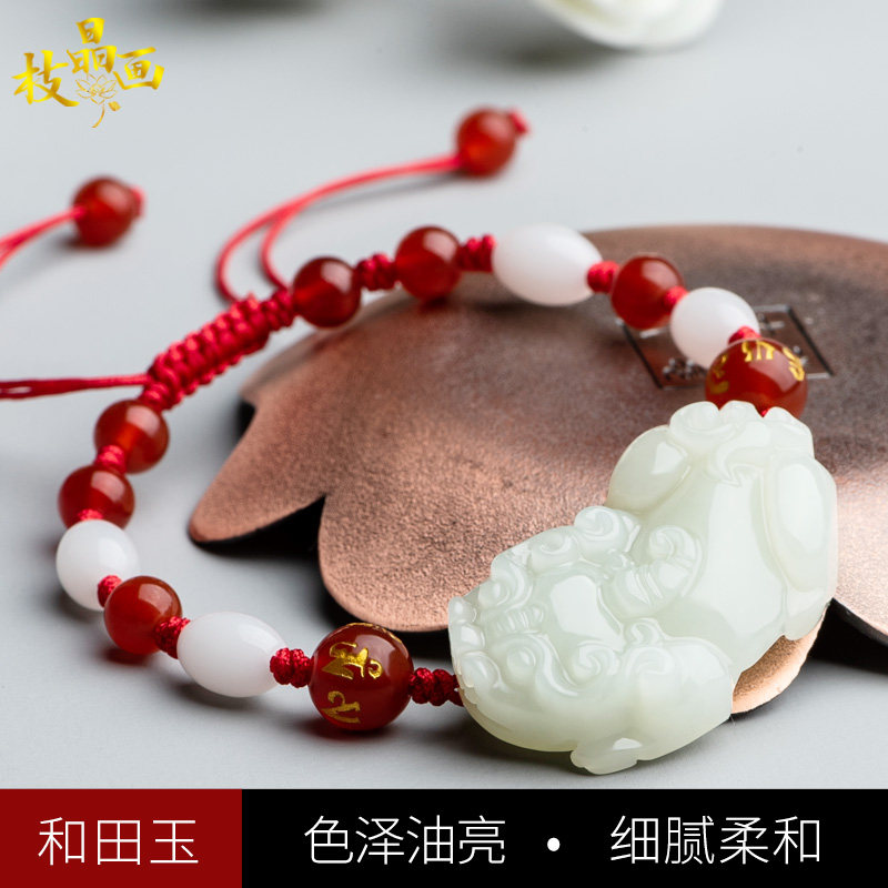 Мужские натуральные четки из круглых бусин для влюбленных из нефрита, браслет из красной нити, подвеска, ручка, ювелирный шарм, аксессуар