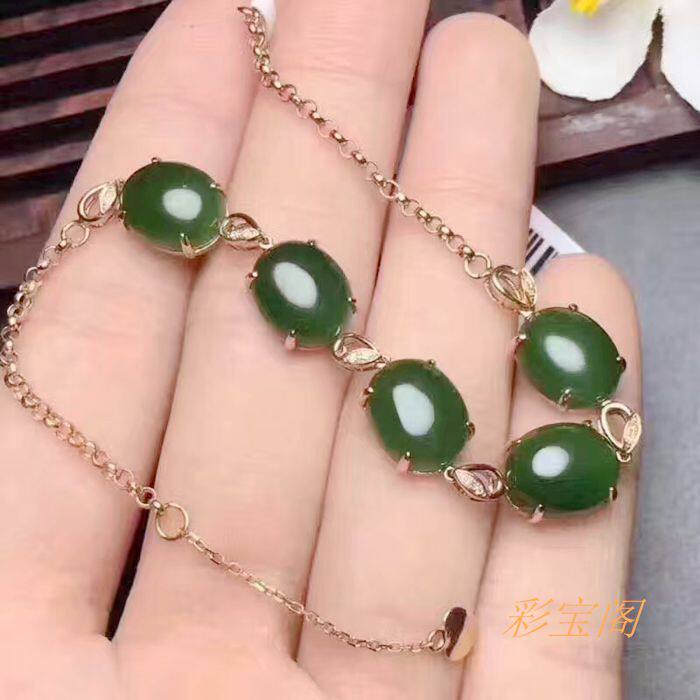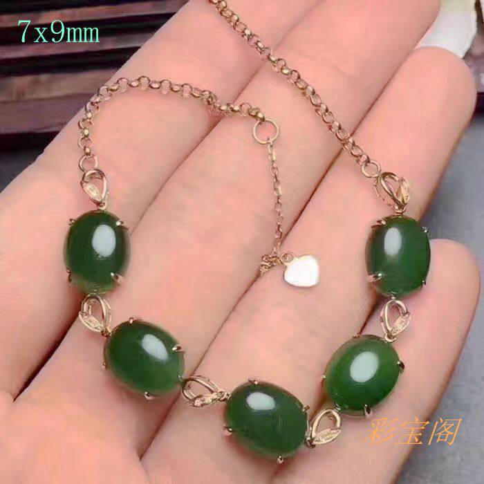Серебряный браслет, инкрустация камня из нефрита, серебро 925 пробы, женский стиль, 7x, DIY