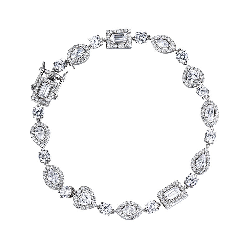 Платиновое ювелирное украшение, геометрический бриллиантовый универсальный браслет, серебро 925 пробы, инкрустировано бриллиантами, простой и элегантный дизайн