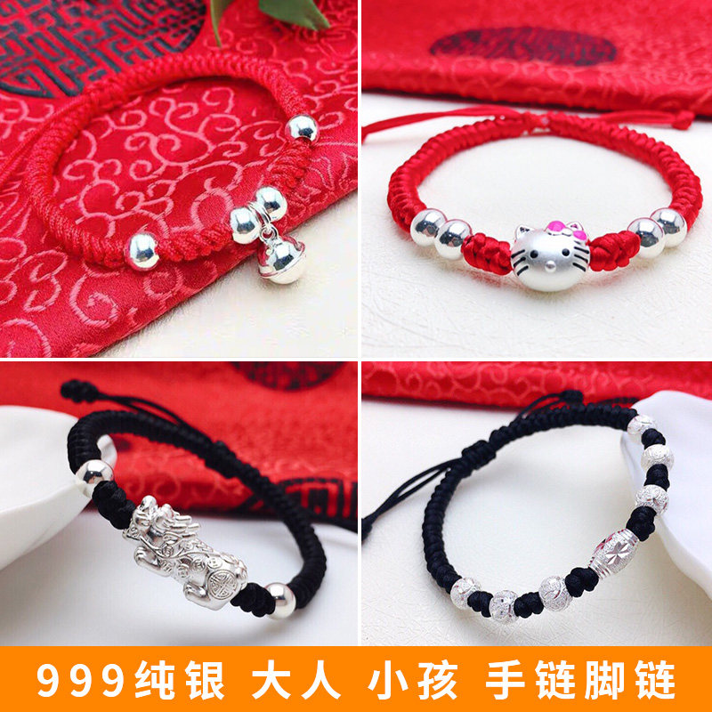 Браслет из бисера, браслет на ногу, колокольчик, плетеный браслет с одной бусиной подходит для мужчин и женщин для девочек, серебро 999 пробы, подарок на день рождения