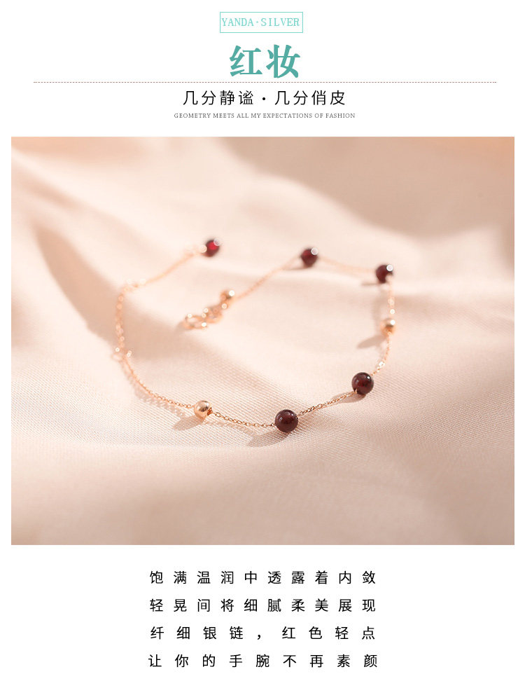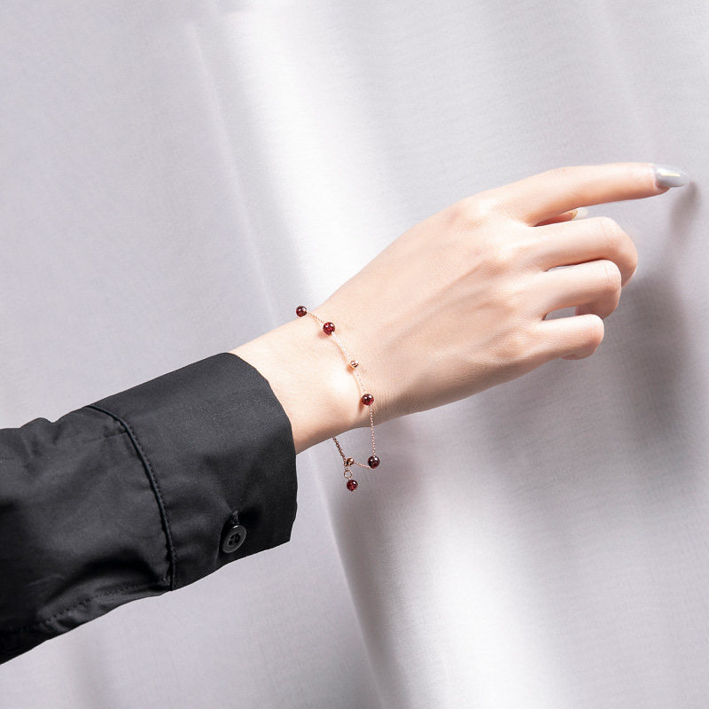 Золотой брендовый небольшой дизайнерский браслет из бисера из граната, серебро 925 пробы, легкий роскошный стиль, розовое золото, подарок на день рождения