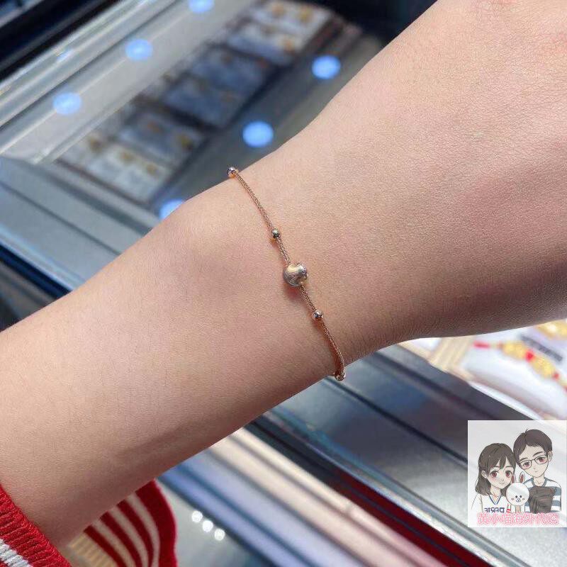 Ювелирное украшение, золотой браслет с одной бусиной, Гонконг, 18 карат, розовое золото, кошачий глаз