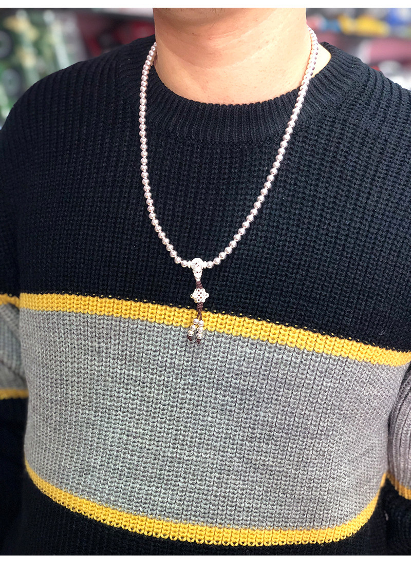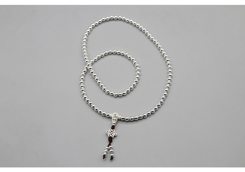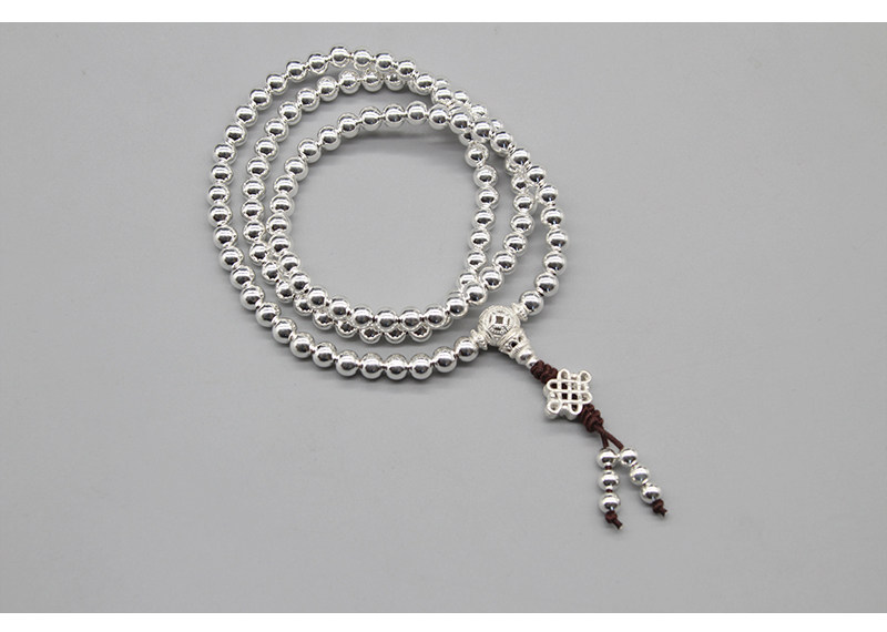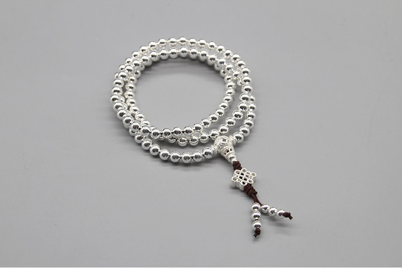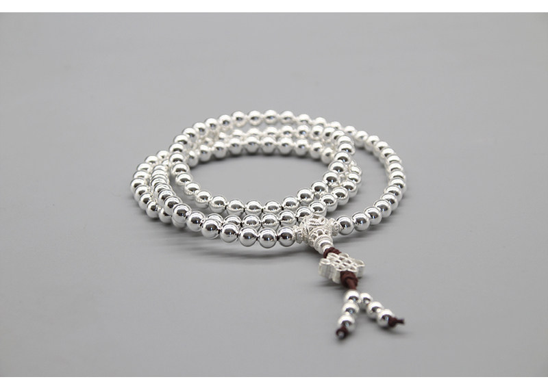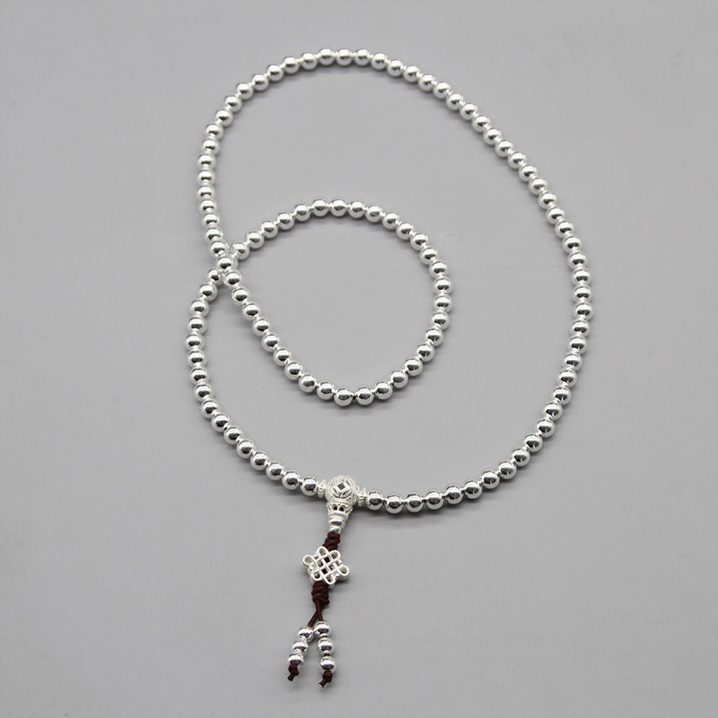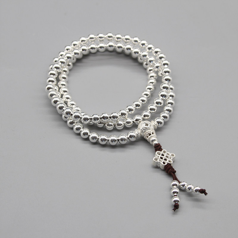 Серебряный браслет ручной работы, четки из круглых бусин подходит для мужчин и женщин, аксессуар, серебро 925 пробы, 108 бусин