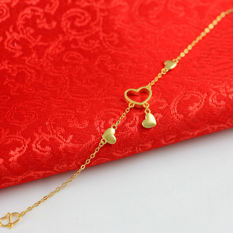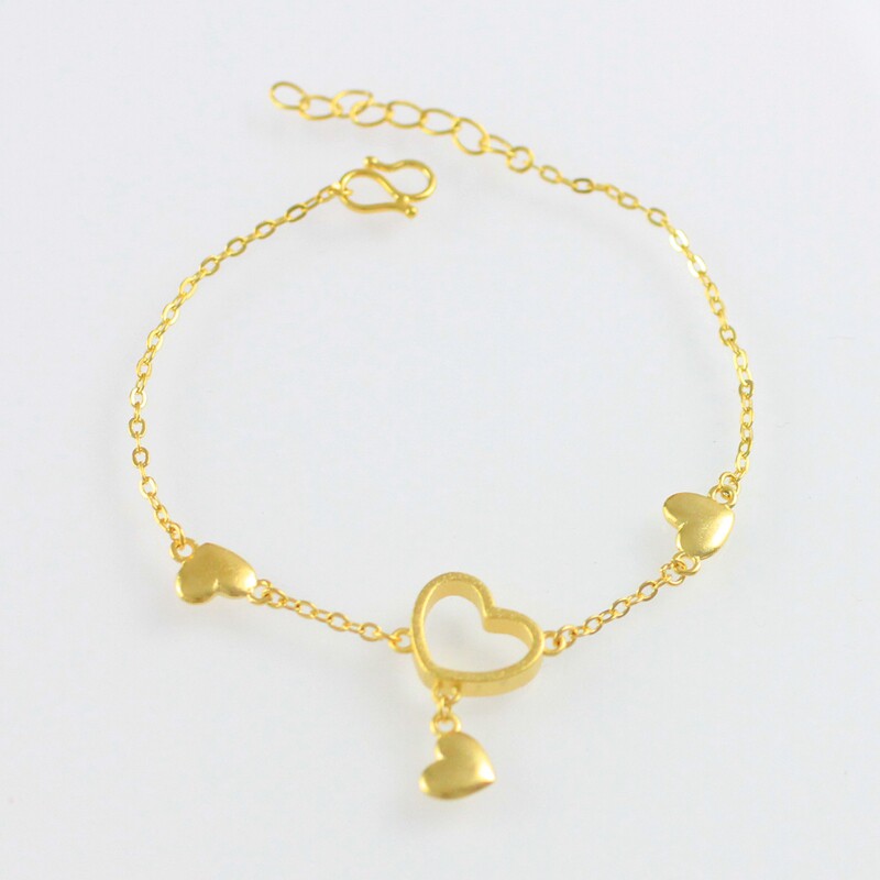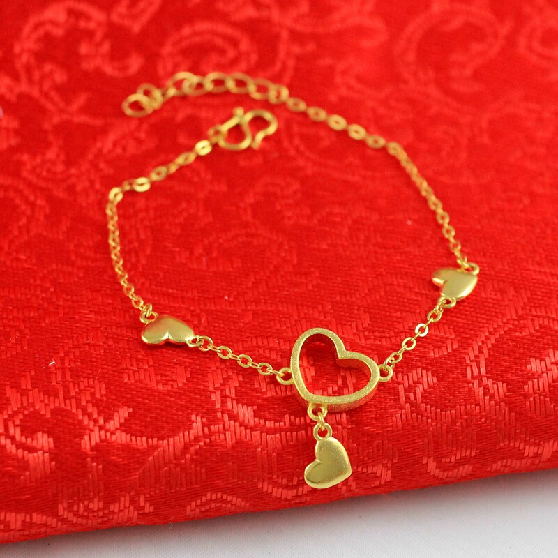Модный латунный браслет в виде сердечка, золотой аксессуар, в корейском стиле, золото 24 карат, подарок на день рождения
